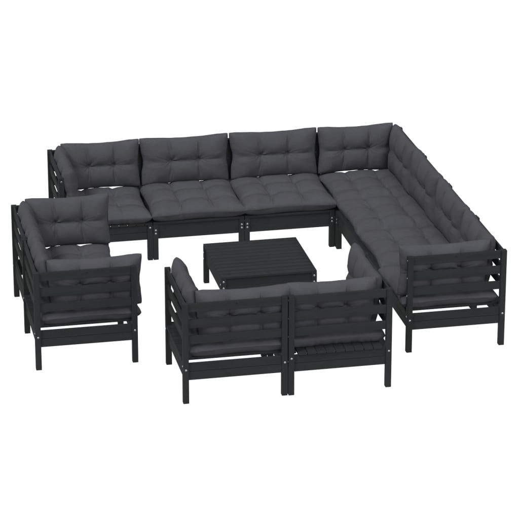 12-cz. zestaw wypoczynkowy do ogrodu, poduszki, czarna sosna