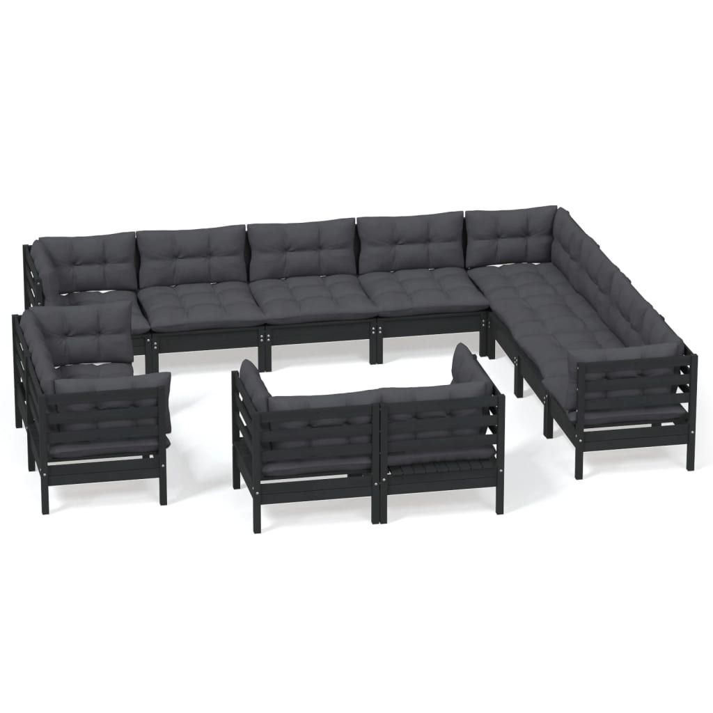 12-cz. zestaw wypoczynkowy do ogrodu, poduszki, czarna sosna