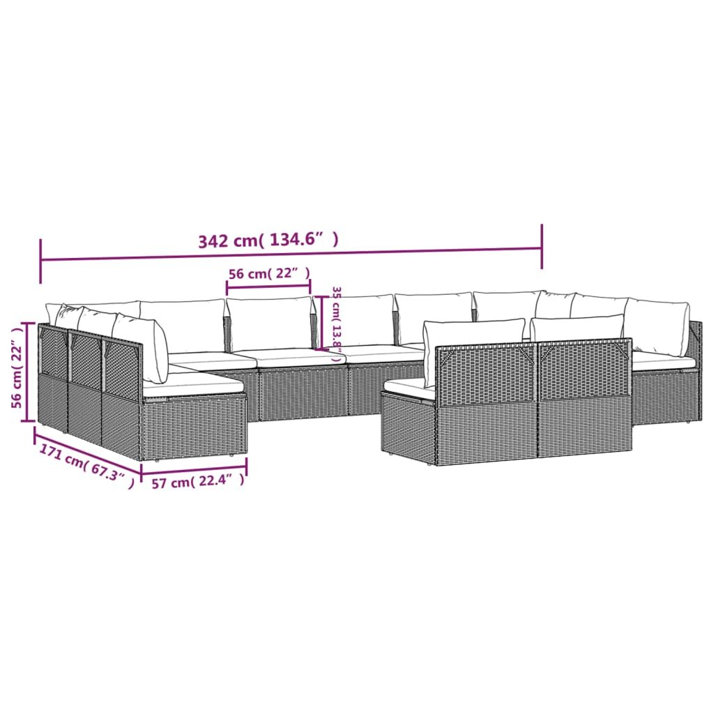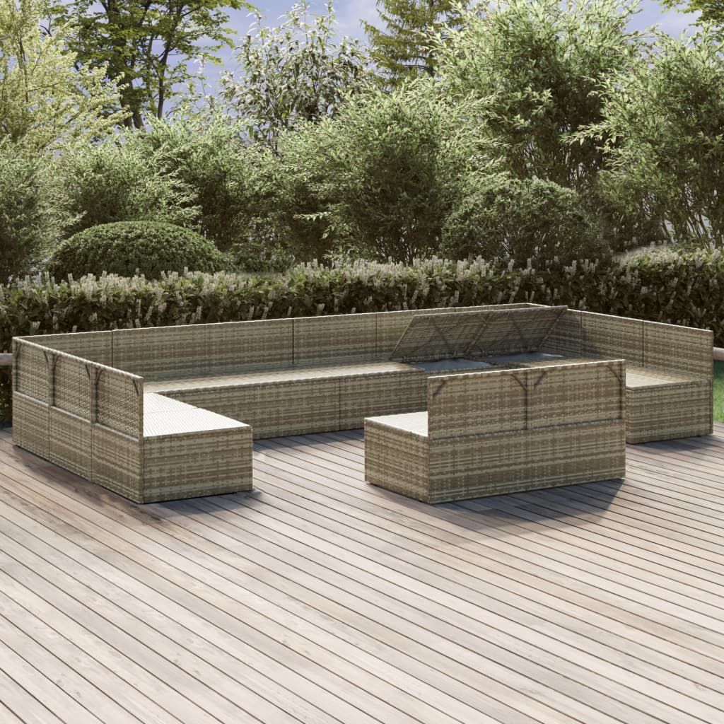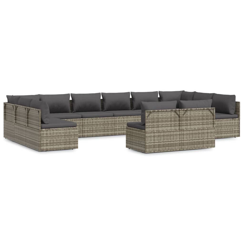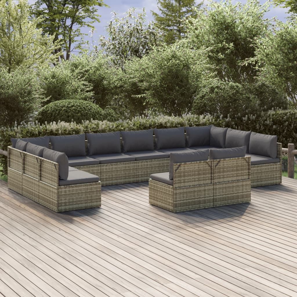 12-cz. zestaw wypoczynkowy do ogrodu, poduszki, szary rattan PE