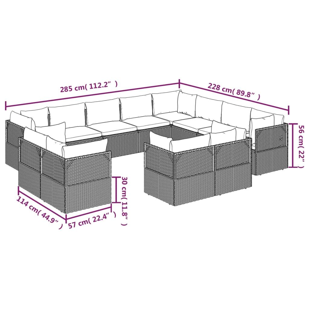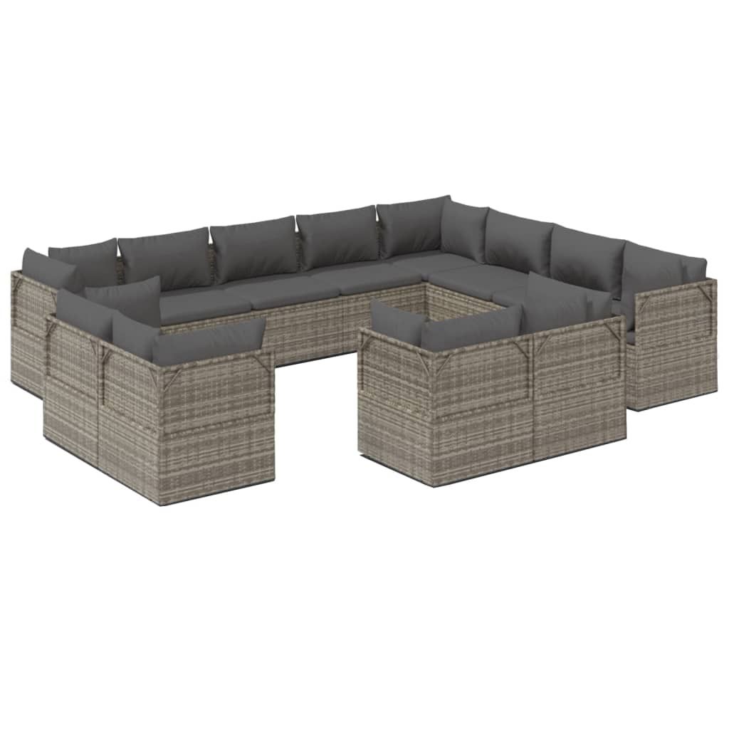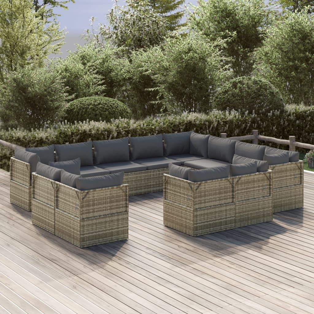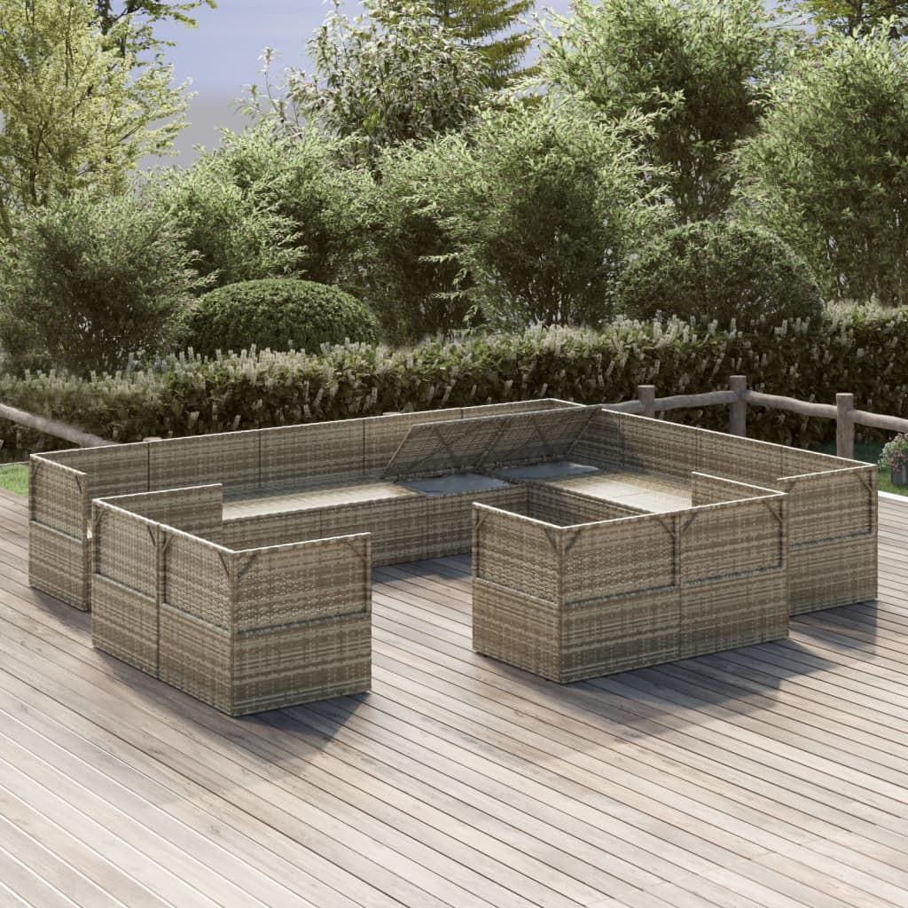 12-cz. zestaw wypoczynkowy do ogrodu, poduszki, szary rattan PE