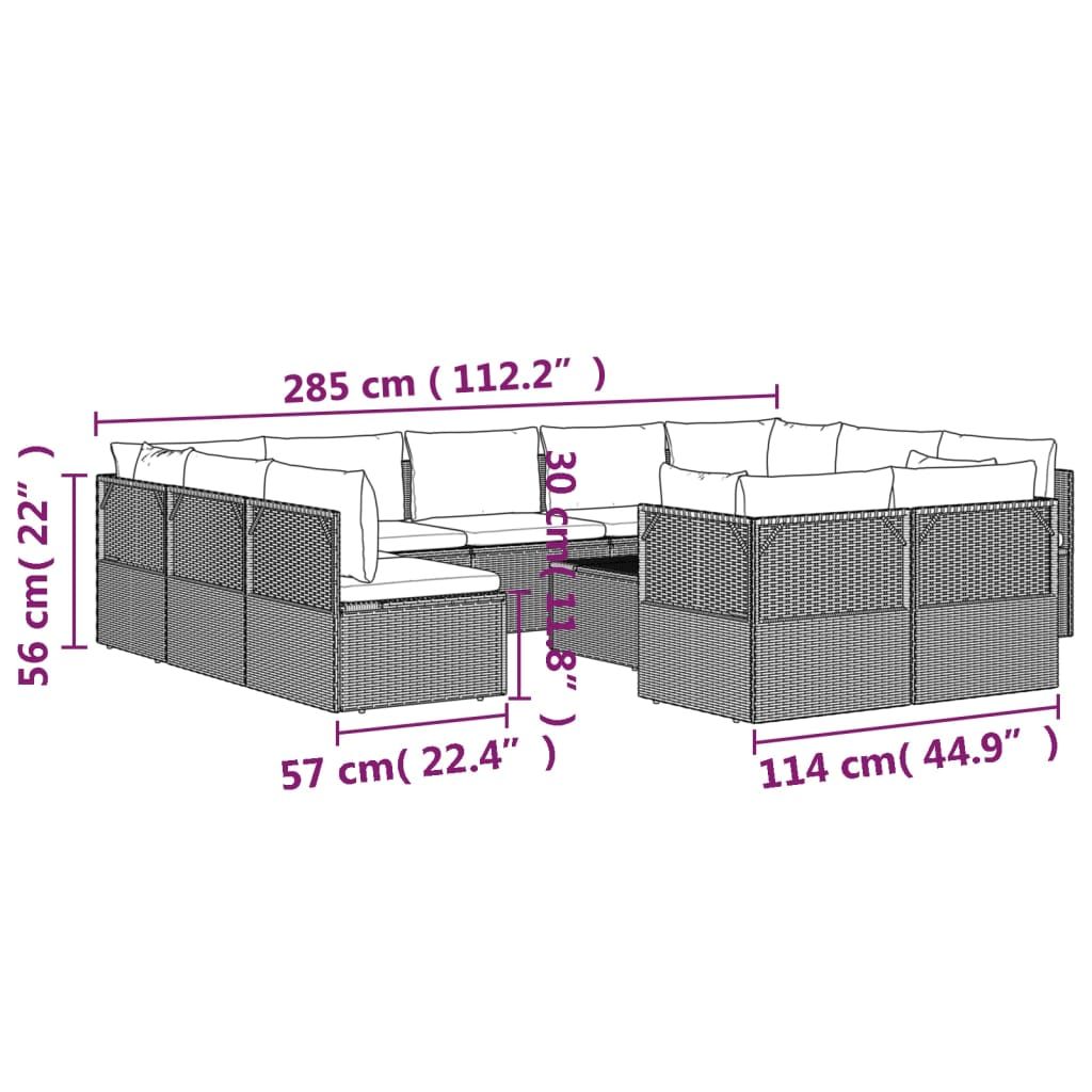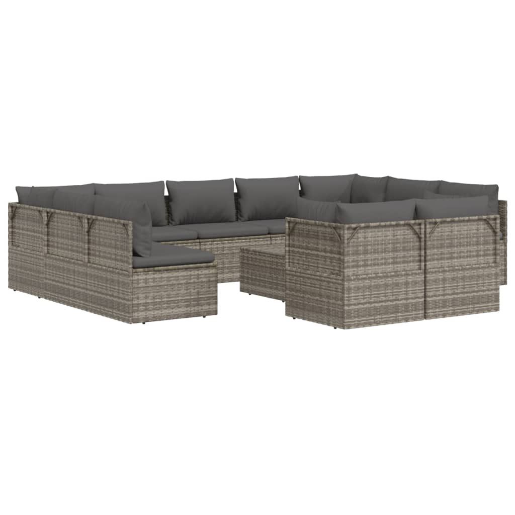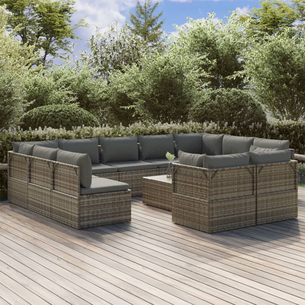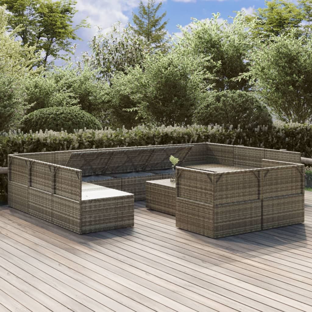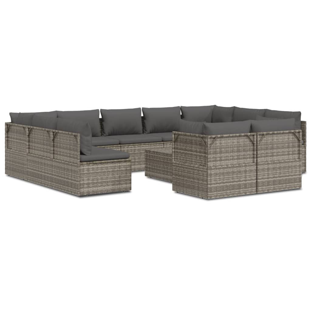 12-cz. zestaw wypoczynkowy do ogrodu, poduszki, szary rattan PE