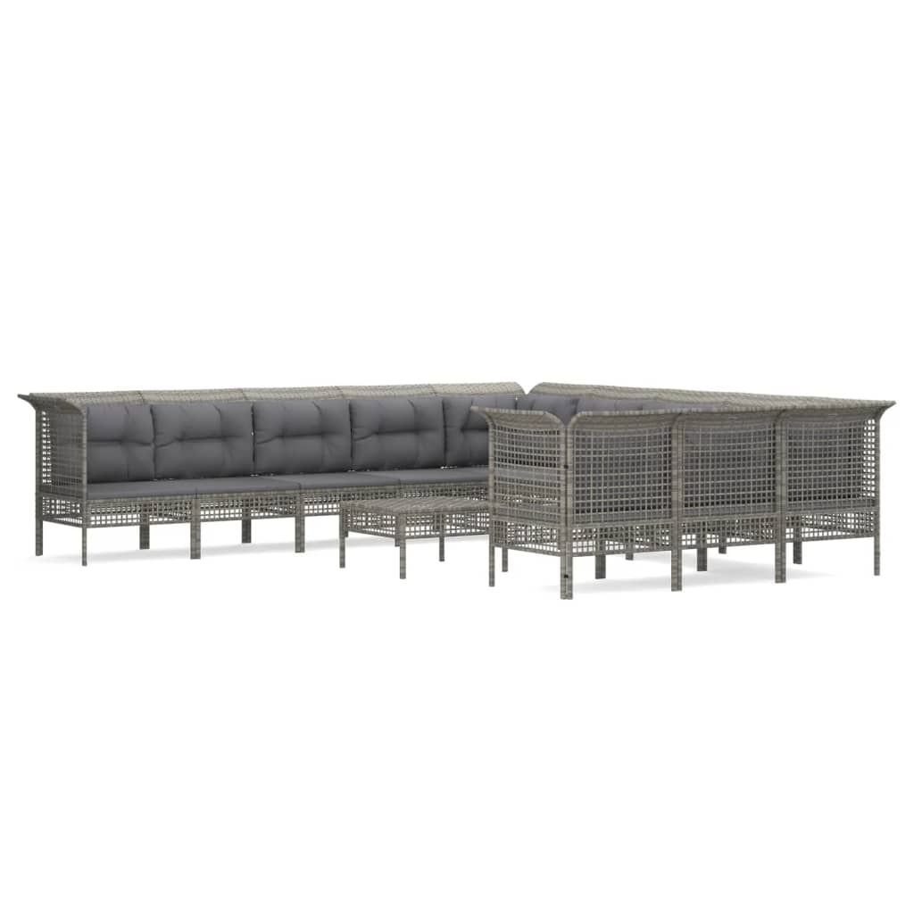 12-cz. zestaw wypoczynkowy do ogrodu, poduszki, szary rattan PE