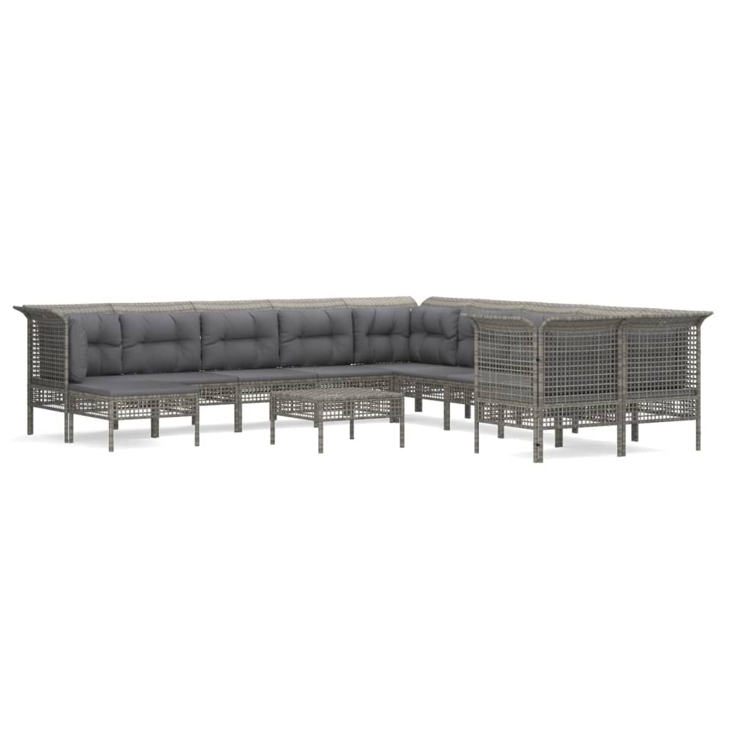 12-cz. zestaw wypoczynkowy do ogrodu, poduszki, szary rattan PE