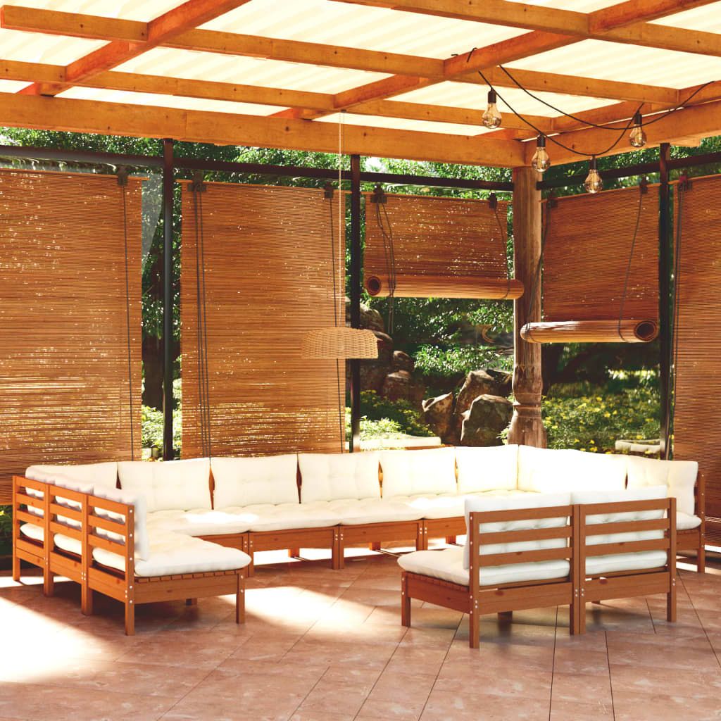 Ten ogrodowy zestaw wypoczynkowy jest znakomitym wyborem na relaks i korzystanie z pogody, a także drzemkę czy rozmowę z rodziną lub przyjaciółmi. Zestaw wypoczynkowy do ogrodu wykonano z litego drewna sosnowego, dzięki czemu jest solidny i stabilny. Poduszki oferują większy komfort. Możesz zestawiać ten komplet z innymi modułami i tworzyć własne aranżacje mebli wypoczynkowych w ogrodzie! Uwaga: aby przedłużyć żywotność mebli ogrodowych, zalecamy zabezpieczenie ich wodoodpornym pokrowcem.
