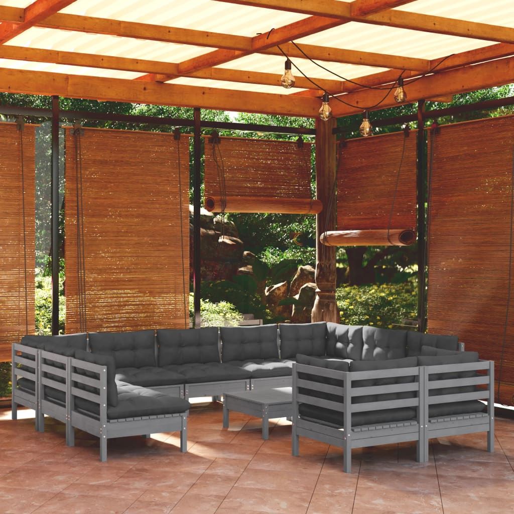 12-cz. zestaw wypoczynkowy do ogrodu, z poduszkami, szary