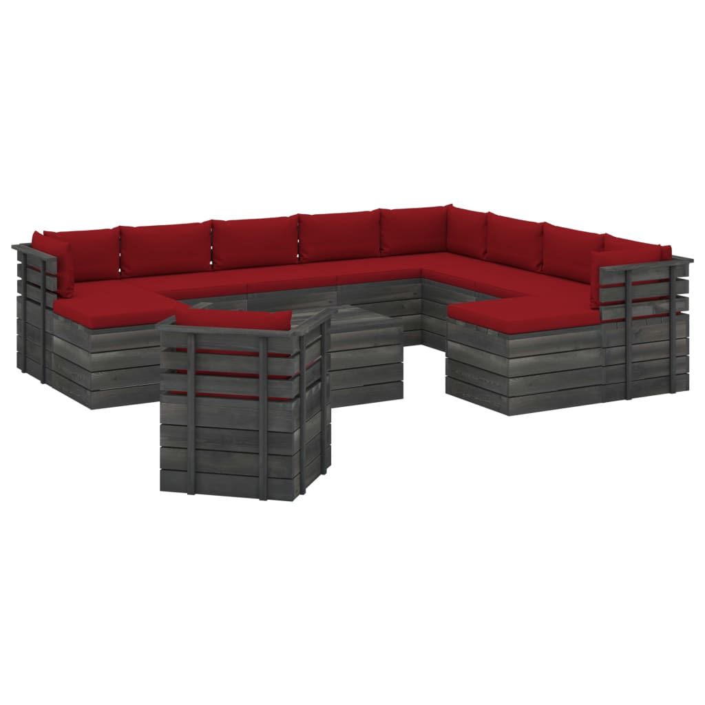 12-cz. zestaw wypoczynkowy z palet, z poduszkami, lita sosna