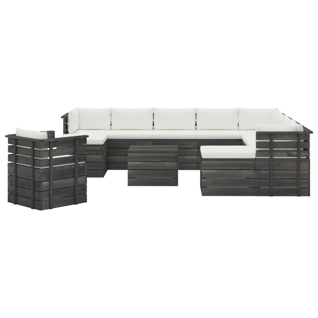 12-cz. zestaw wypoczynkowy z palet, z poduszkami, lita sosna