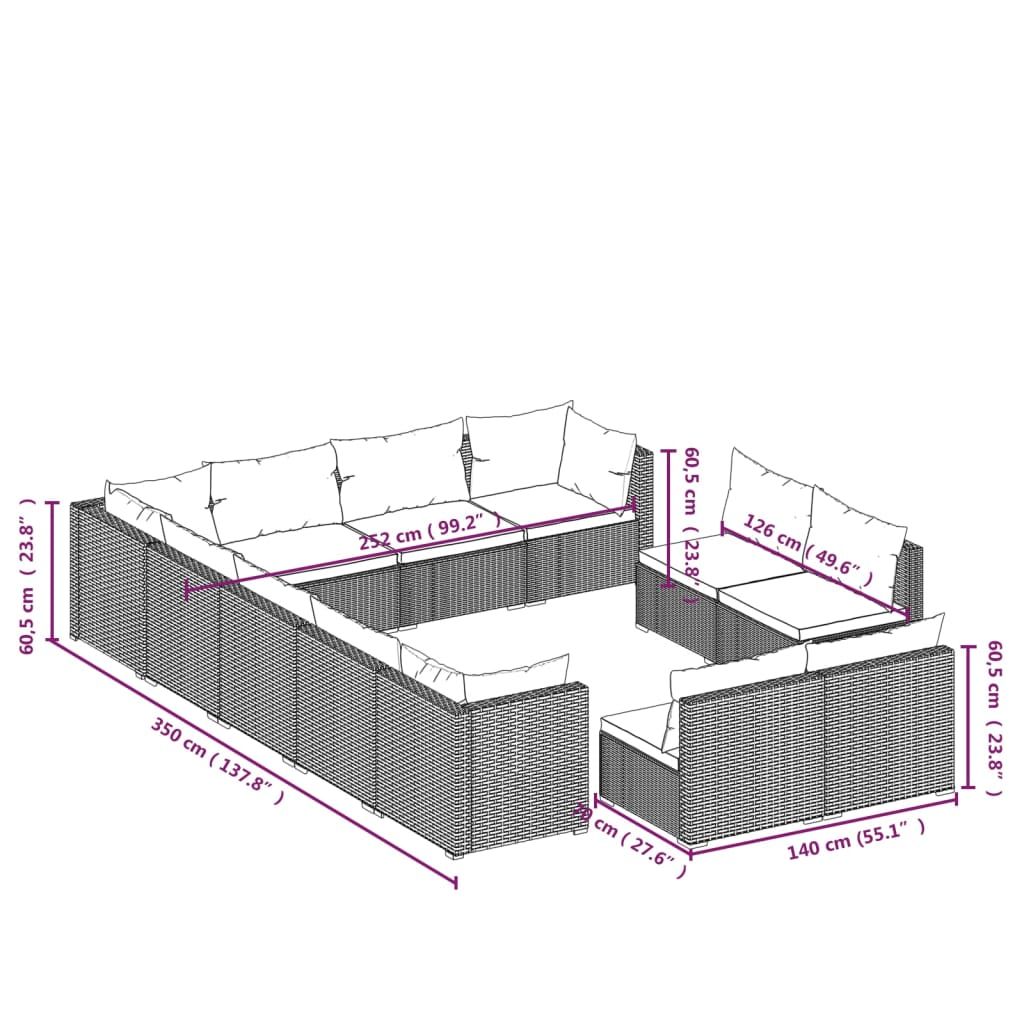 Opis produktu: Ten modny, 12-częściowy, polirattanowy zestaw wypoczynkowy do ogrodu będzie znakomitym dodatkiem do Twojej przestrzeni na świeżym powietrzu. Wniesie odrobinę nowoczesnej elegancji na Twoje patio lub do ogrodu dzięki prostej i stylowej formie. Materiał premium: zestaw wypoczynkowy na patio został zaprojektowany z wodoodpornego rattanu PE, dzięki czemu jest wytrzymały i nadaje się do codziennego użytku na zewnątrz.Stabilna rama: malowane proszkowo ramy ze stali zapewniają solidność i stabilność.Wygoda siedzenia: grubo wyściełane i miękkie poduszki zapewniają optymalny komfort siedzenia na zewnątrz.Swobodne przestawianie na każdą okazję: te nowoczesne meble ogrodowe można rozdzielać i ustawiać na różne sposoby, aby dopasować je do swojej przestrzeni na zewnątrz, co pozwoli wygodnie rozmawiać z rodziną lub przyjaciółmi na swoim uroczym tarasie, w ogrodzie, na podwórku, przy basenie itp. Uwaga:Aby przedłużyć żywotność mebli ogrodowych, zalecamy zabezpieczenie ich wodoodpornym pokrowcem.