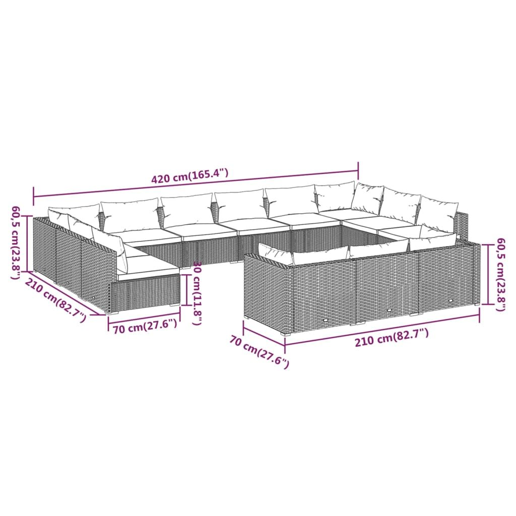 13-cz. zestaw mebli do ogrodu, poduszki, czarny rattan PE