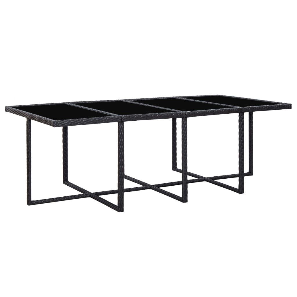 Stylowy zestaw mebli rattanowych stanie się głównym punktem w Twoim ogrodzie, na tarasie lub patio. Rattanowy zestaw mebli ogrodowych o eleganckiej formie będzie doskonały do spożywania posiłku na świeżym powietrzu lub relaksu w ogrodzie. Wykonanie z odpornego na warunki atmosferyczne i wodę rattanu PE gwarantuje, że meble będą łatwe w czyszczeniu, trwałe i doskonałe w codziennym użytkowaniu. Malowane proszkowo, stalowe ramy czynią stół i krzesła trwałymi i solidnymi. Lekka konstrukcja daje możliwość łatwego przenoszenia. Szklany blat jest łatwy w czyszczeniu za pomocą wilgotnej szmatki. Grube, miękkie, wypełnione gąbką poduszki na siedziska i pod plecy są niezwykle wygodne i wykonane z odpornego na wodę poliestru. Powłoczki mają suwaki, co pozwala na ich zdjęcie i wypranie. Uwaga: zalecamy przykrycie zestawu na czas deszczu, śniegu i mrozu.
