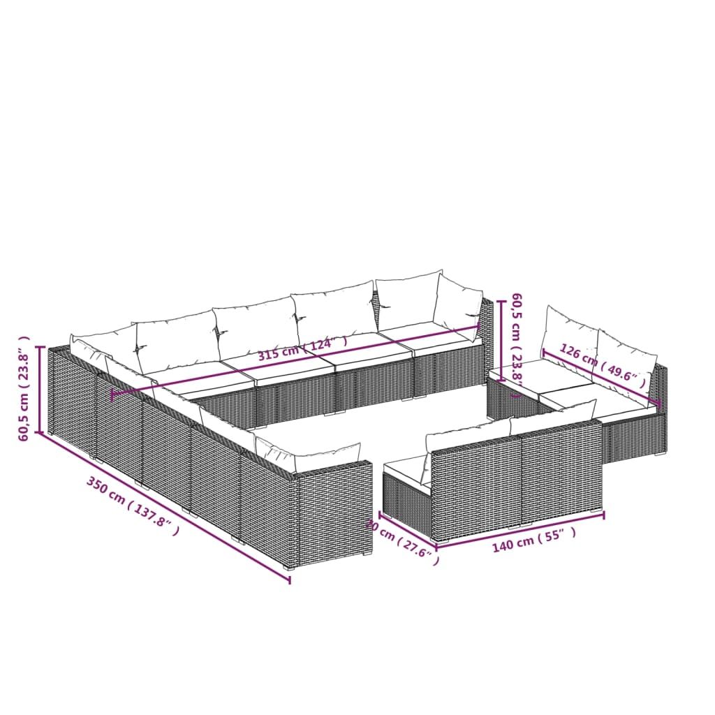 13-cz. zestaw wypoczynkowy do ogrodu, poduszki rattan PE czarny