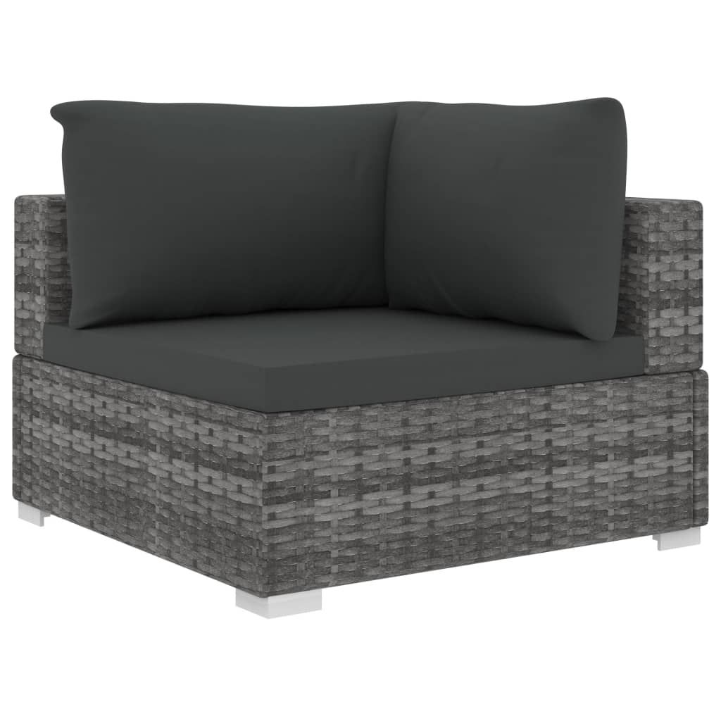 Zestaw rattanowych mebli ogrodowych łączy w sobie styl i funkcjonalność oraz z pewnością stanie się centralnym punktem w Twoim ogrodzie lub na tarasie. Jest on przeznaczony do całorocznego użytkowania na zewnątrz. Dzięki zastosowaniu odpornego na czynniki pogodowe oraz wodę rattanu PE zestaw ten jest łatwy do czyszczenia, wytrzymały i odpowiedni do codziennego użytkowania. Jego mocna, malowana proszkowo, stalowa rama zapewnia niezwykłą trwałość. Zestaw jest modułowy i lekki, można go więc swobodnie przestawiać i dopasować do każdego otoczenia. Grube, zdejmowane poduszki są bardzo wygodne. Zawartość przesyłki: 3 sofy narożne, 5 sof środkowych, 2 podnóżki, 1 fotel, 2 stoliki kawowe, 11 poduszek na siedziska oraz 12 poduszek na oparcia. Uwaga: zalecamy przykrycie zestawu na czas deszczu, śniegu i mrozu.