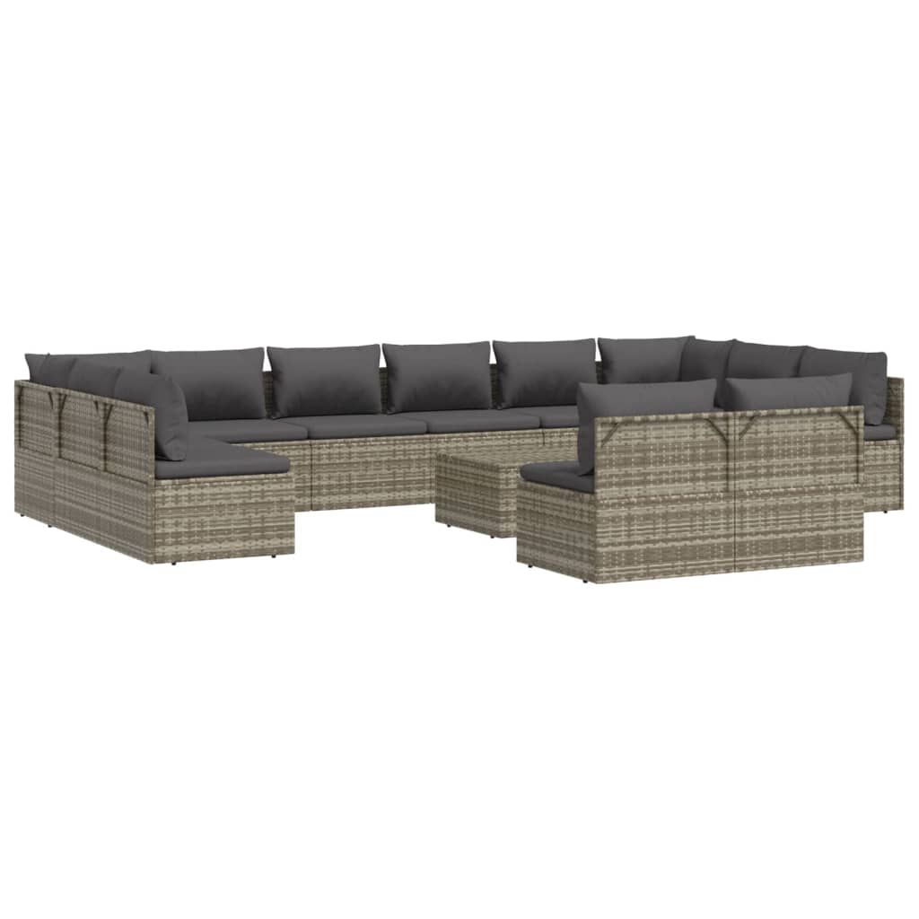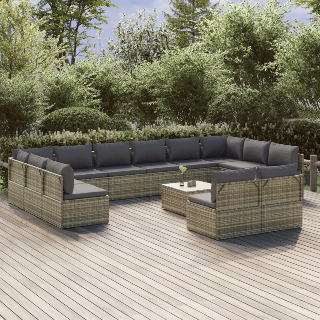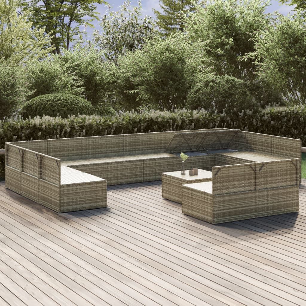 13-cz. zestaw wypoczynkowy do ogrodu, poduszki, szary rattan PE