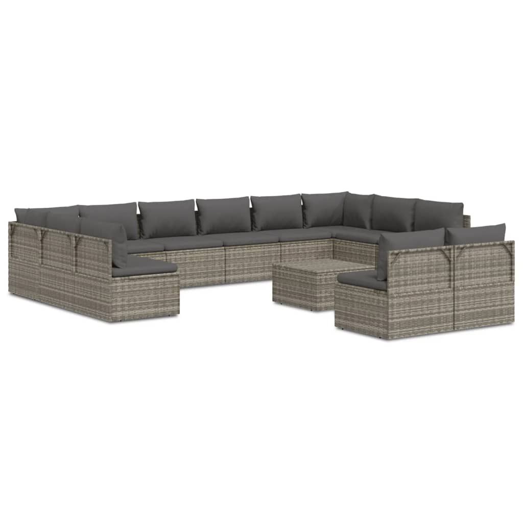 13-cz. zestaw wypoczynkowy do ogrodu, poduszki, szary rattan PE