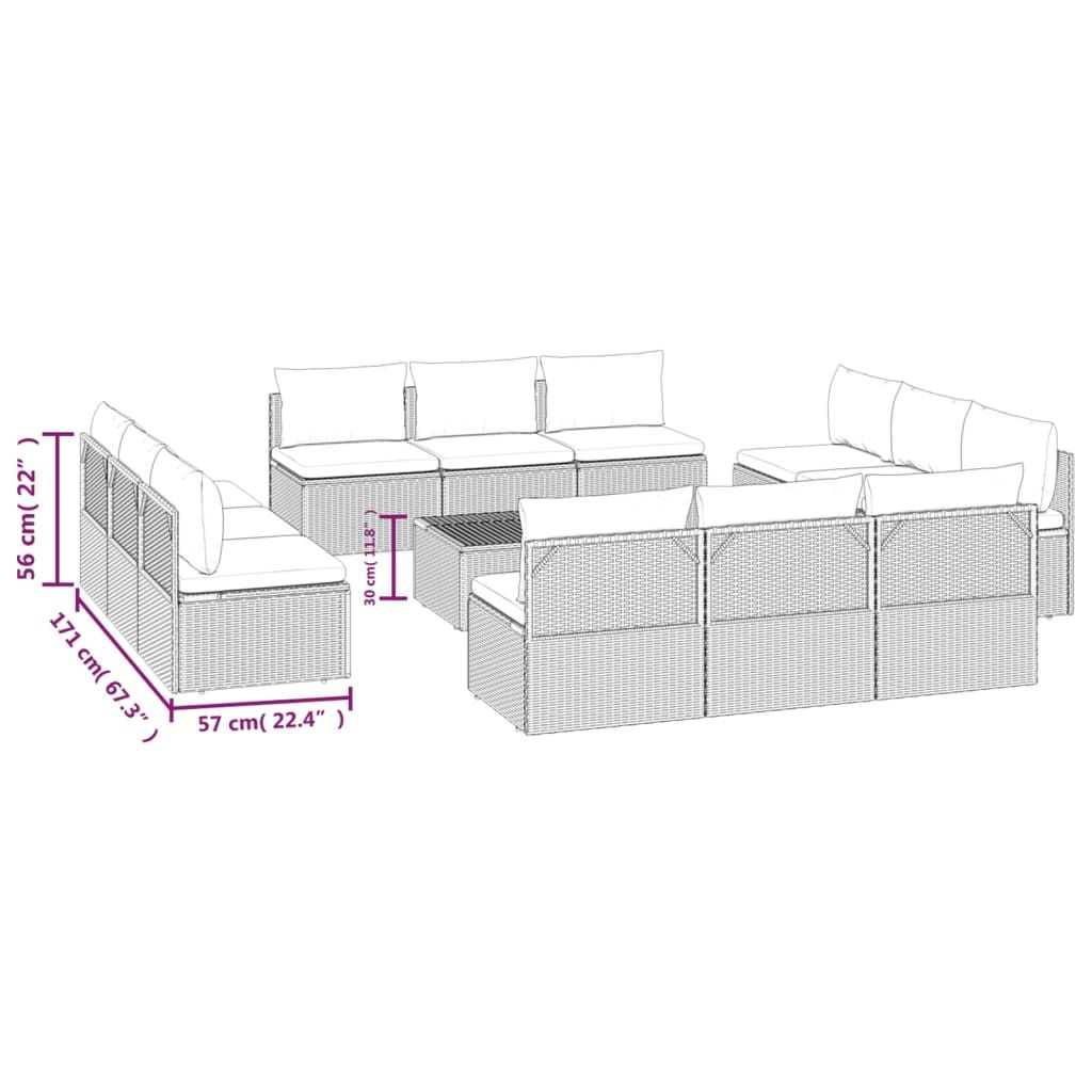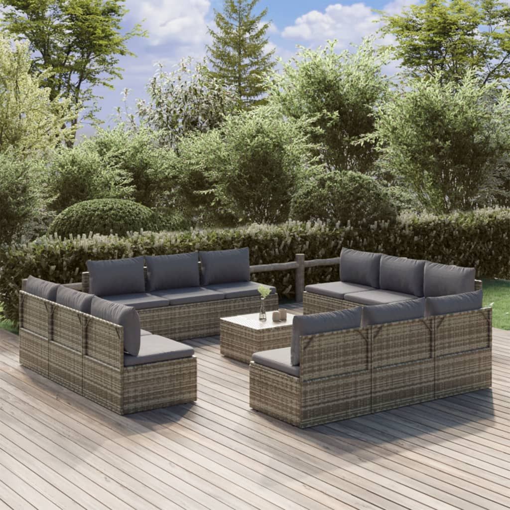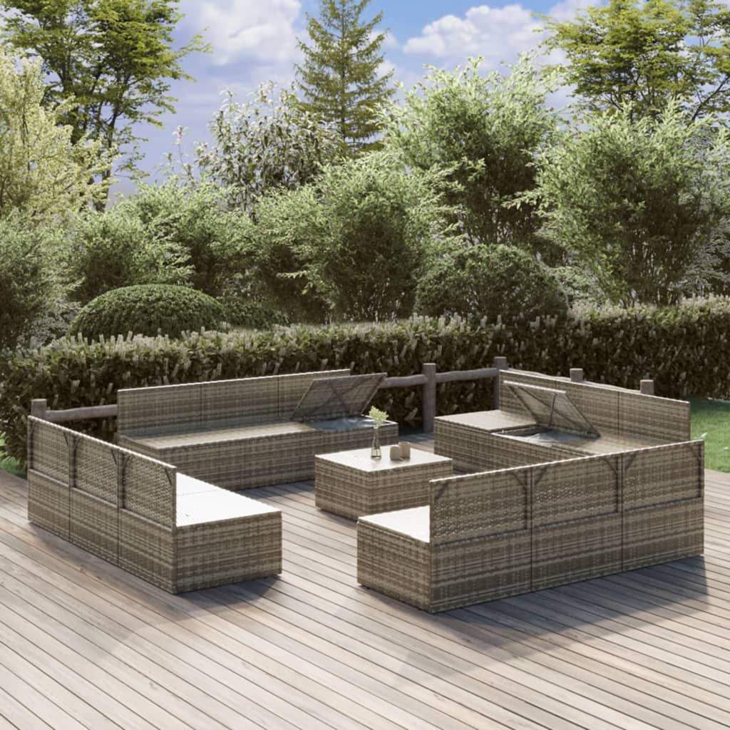 13-cz. zestaw wypoczynkowy do ogrodu, poduszki, szary rattan PE