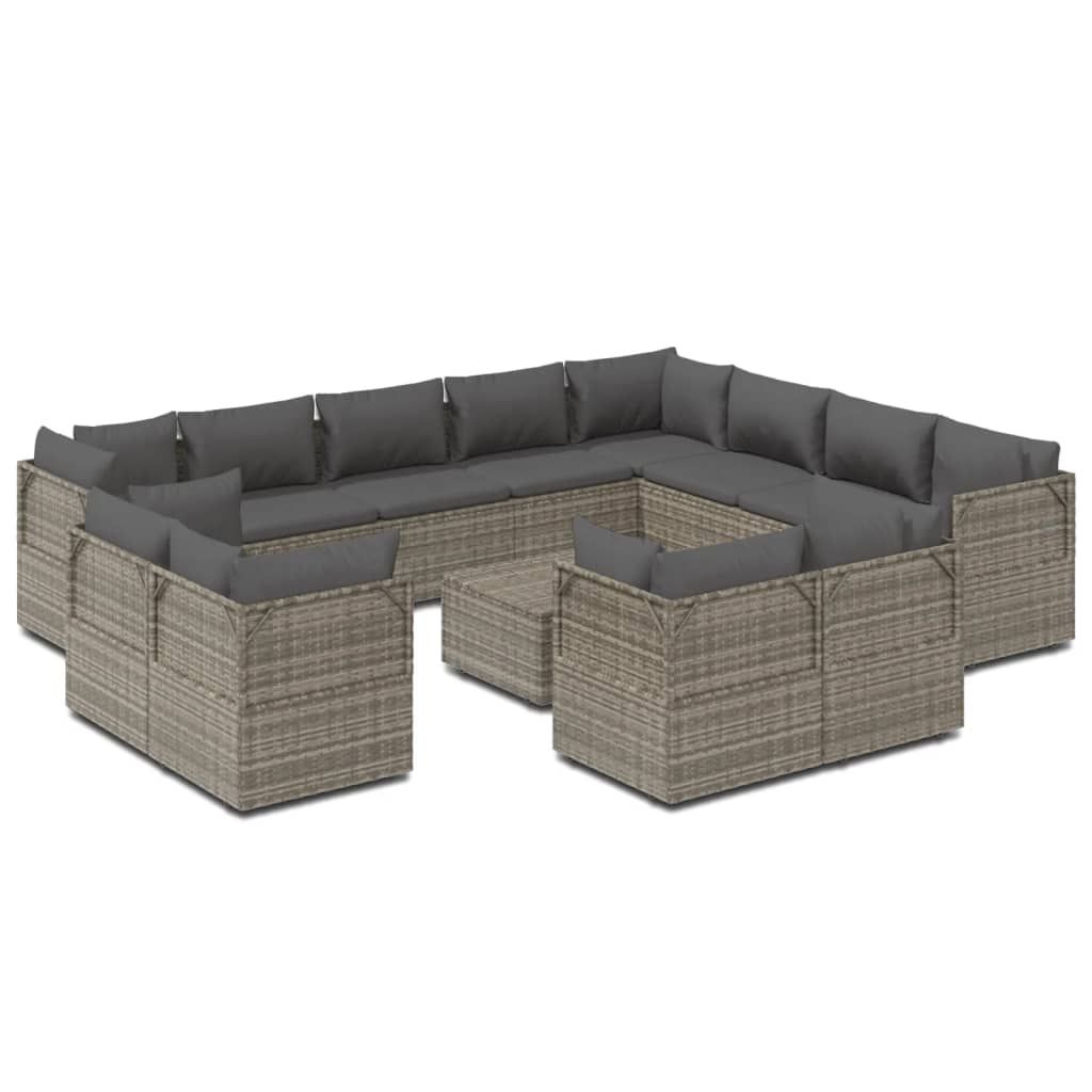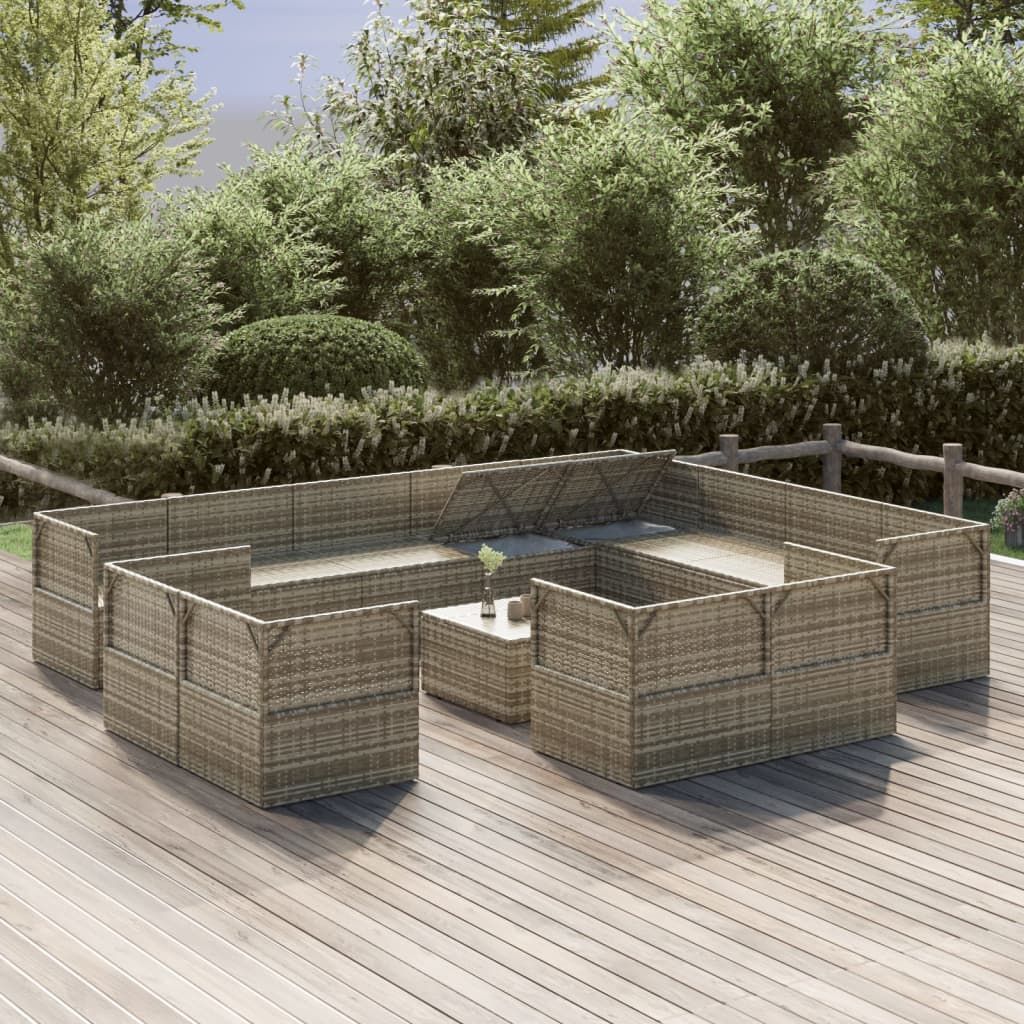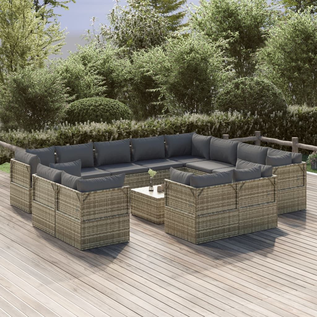 13-cz. zestaw wypoczynkowy do ogrodu, poduszki, szary rattan PE