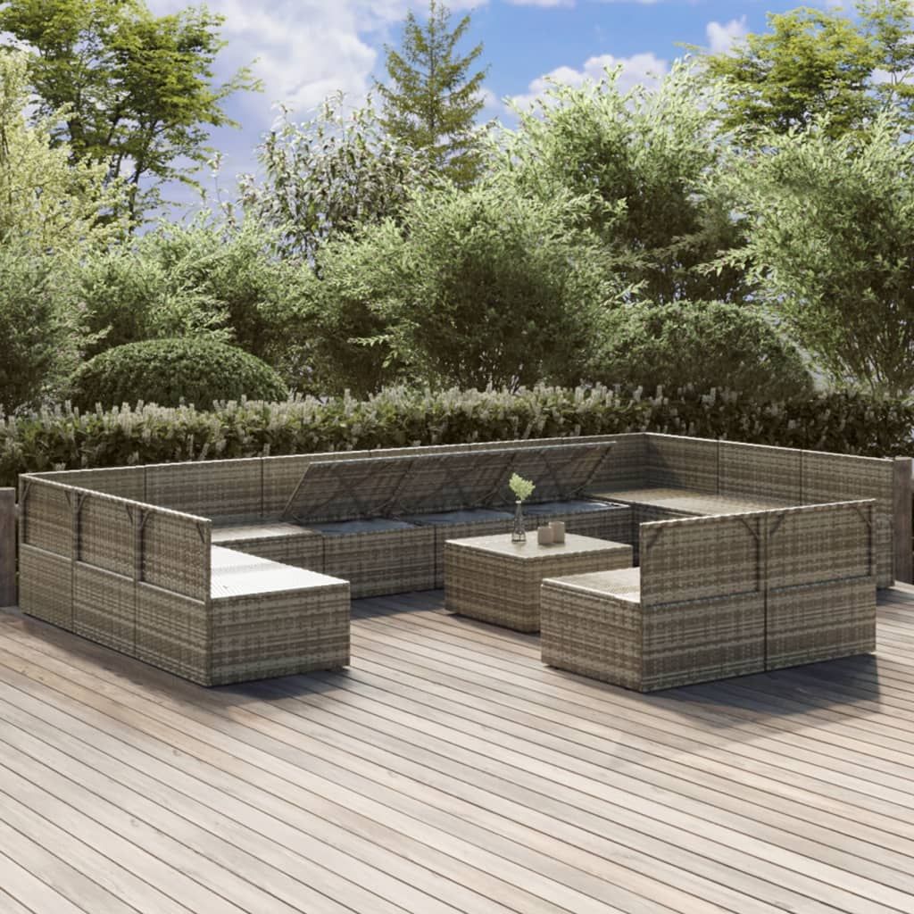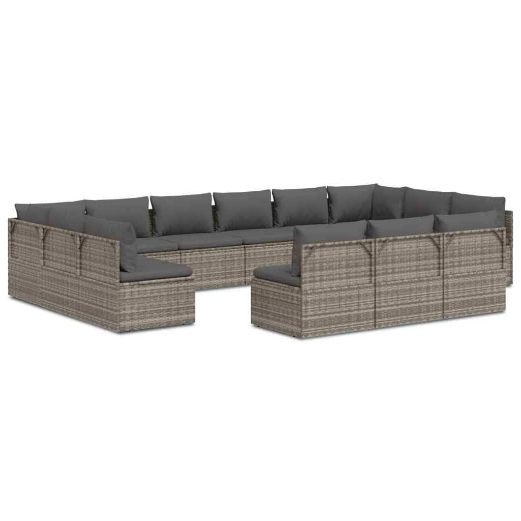 13-cz. zestaw wypoczynkowy do ogrodu, poduszki, szary rattan PE