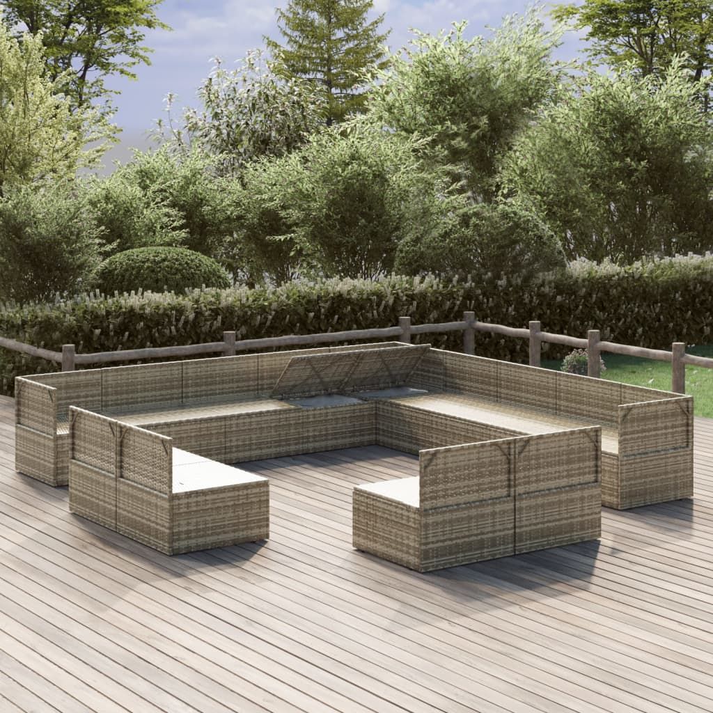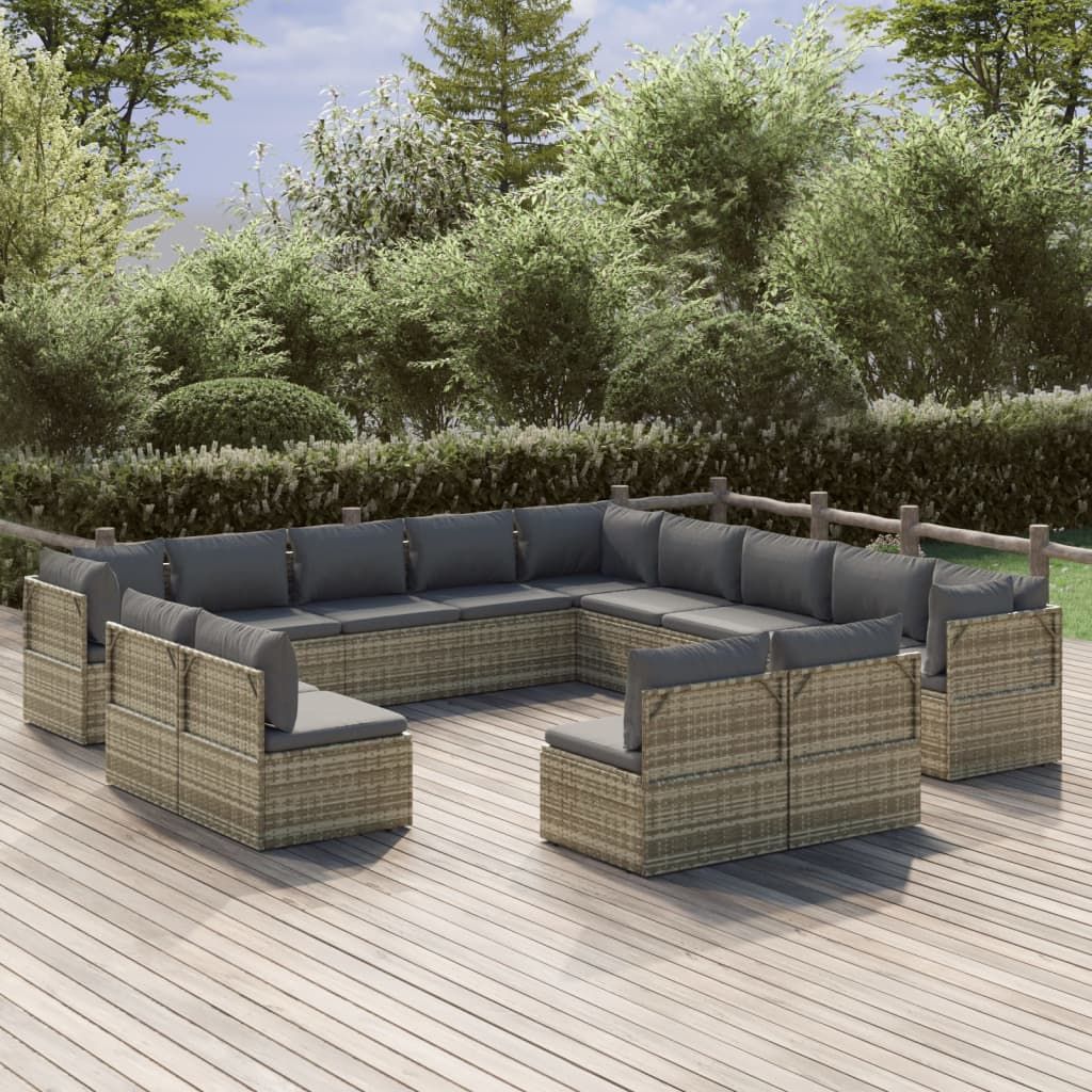 13-cz. zestaw wypoczynkowy do ogrodu, poduszki, szary rattan PE