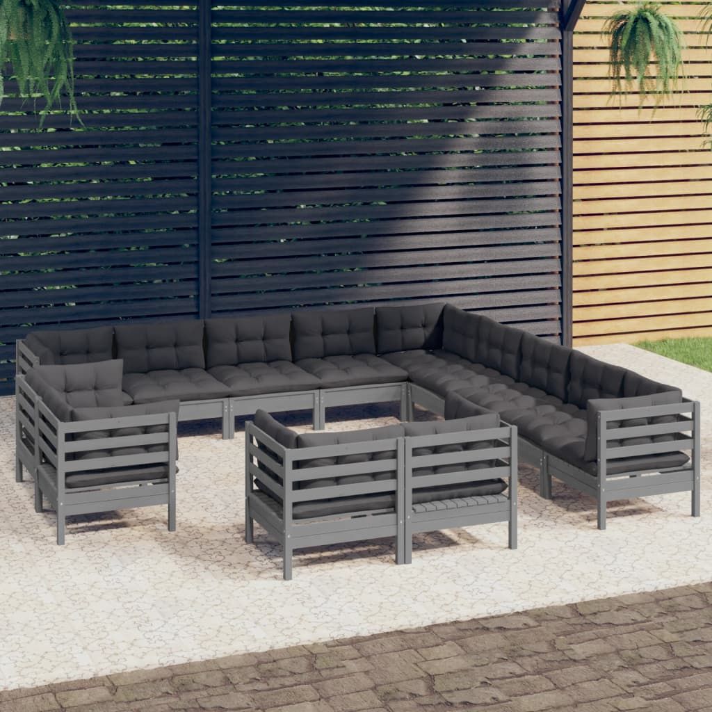 13-cz. zestaw wypoczynkowy do ogrodu, z poduszkami, szara sosna