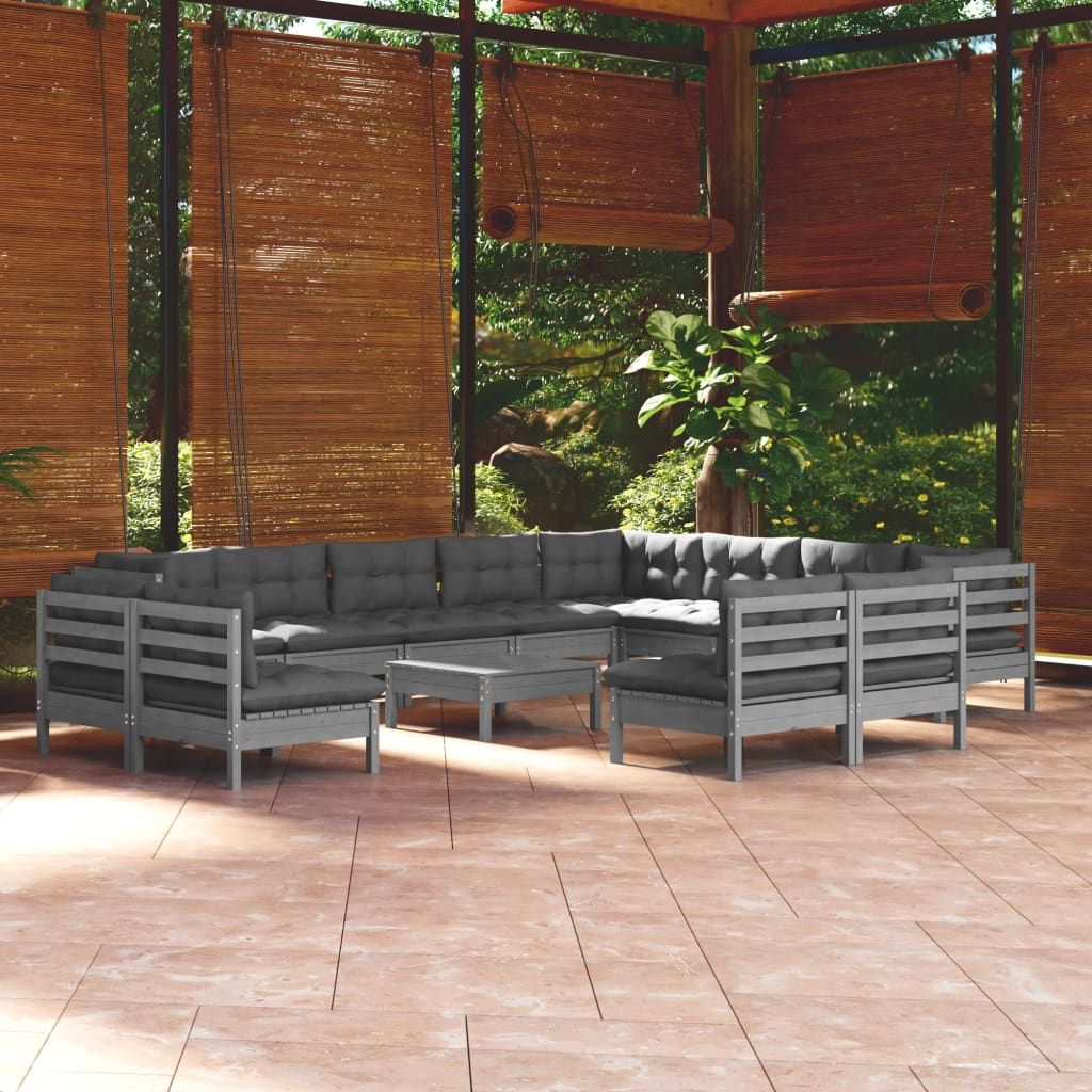 13-cz. zestaw wypoczynkowy do ogrodu, z poduszkami, szary