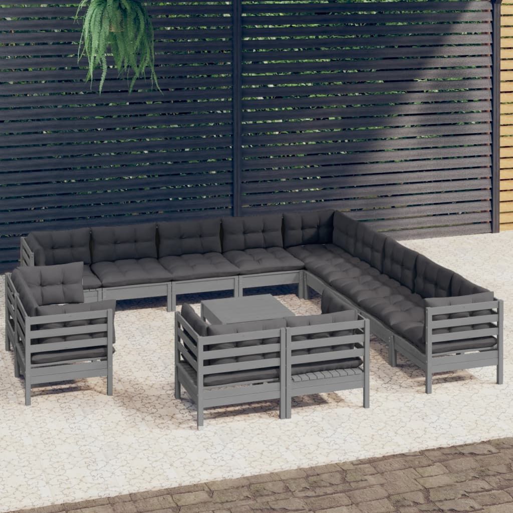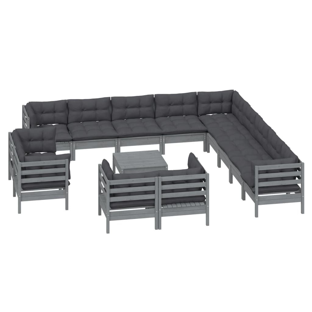 14-cz. zestaw wypoczynkowy do ogrodu, poduszki, szara sosna