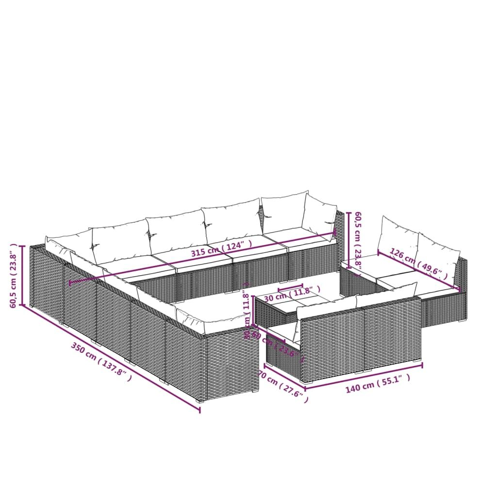 14-cz. zestaw wypoczynkowy do ogrodu, z poduszkami, rattan PE