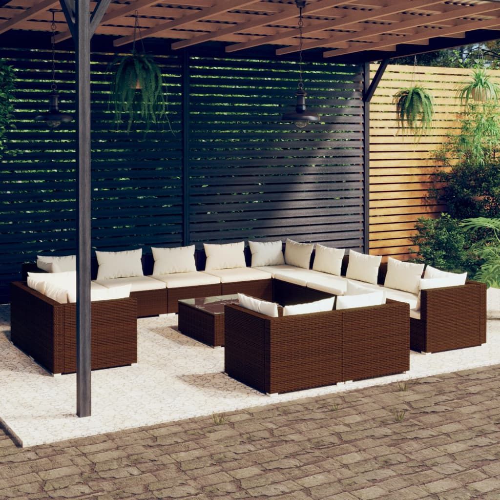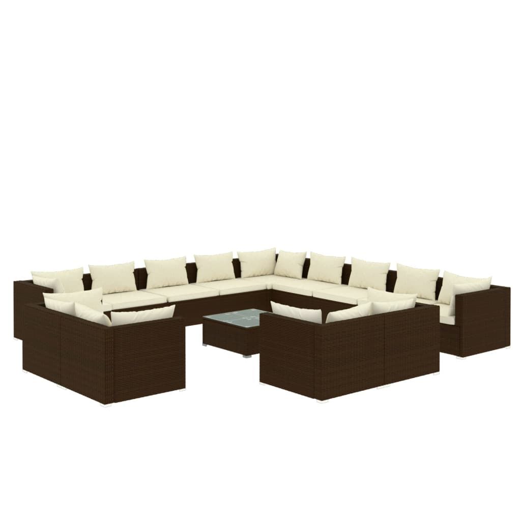 Modny, 14-częściowy, polirattanowy zestaw wypoczynkowy do ogrodu będzie znakomitym dodatkiem do Twojej przestrzeni na świeżym powietrzu. Wprowadza odrobinę nowoczesnej elegancji na Twój taras, balkon lub do ogrodu za sprawą subtelnego i stylowego wzornictwa. Materiał premium: zestaw wypoczynkowy na patio został zaprojektowany z wodoodpornego rattanu PE, dzięki czemu jest wytrzymały i nadaje się do codziennego użytku na zewnątrz.Stabilna rama: malowane proszkowo ramy ze stali zapewniają solidność i stabilność.Wygoda siedzenia: grubo wyściełane i miękkie poduszki zapewniają optymalny komfort siedzenia na zewnątrz.Swobodne przestawianie na każdą okazję: te nowoczesne meble ogrodowe można rozdzielać i ustawiać na różne sposoby, aby dopasować je do swojej przestrzeni na zewnątrz, co pozwoli wygodnie rozmawiać z rodziną lub przyjaciółmi na swoim uroczym tarasie, w ogrodzie, na podwórku, przy basenie itp. Uwaga:Aby przedłużyć żywotność mebli ogrodowych, zalecamy zabezpieczenie ich wodoodpornym pokrowcem.