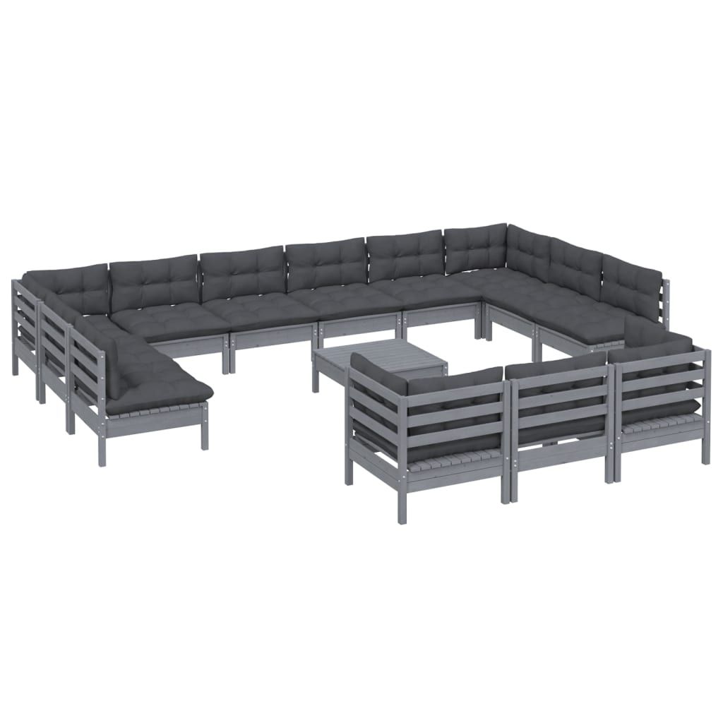 14-cz. zestaw wypoczynkowy do ogrodu, z poduszkami, szary