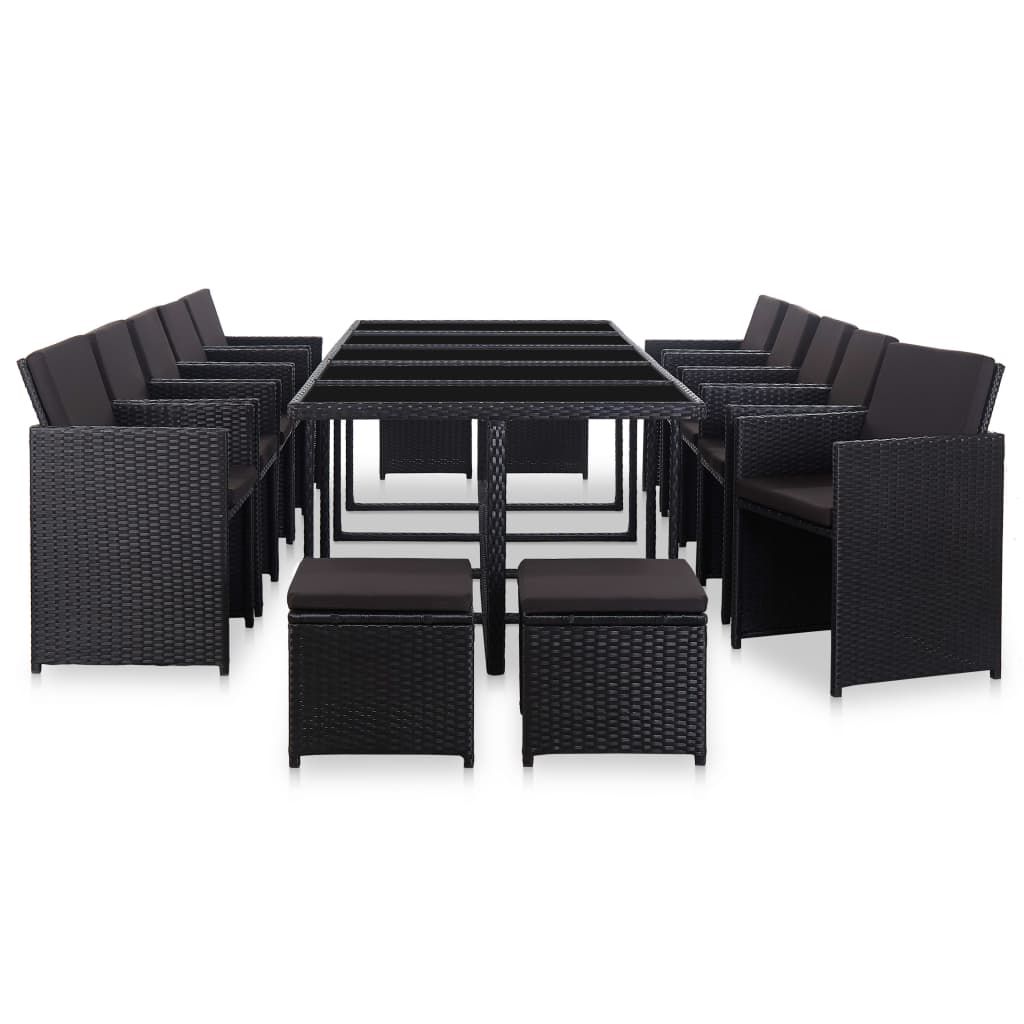 15-cz. zestaw mebli ogrodowych z poduszkami, rattan PE, czarny