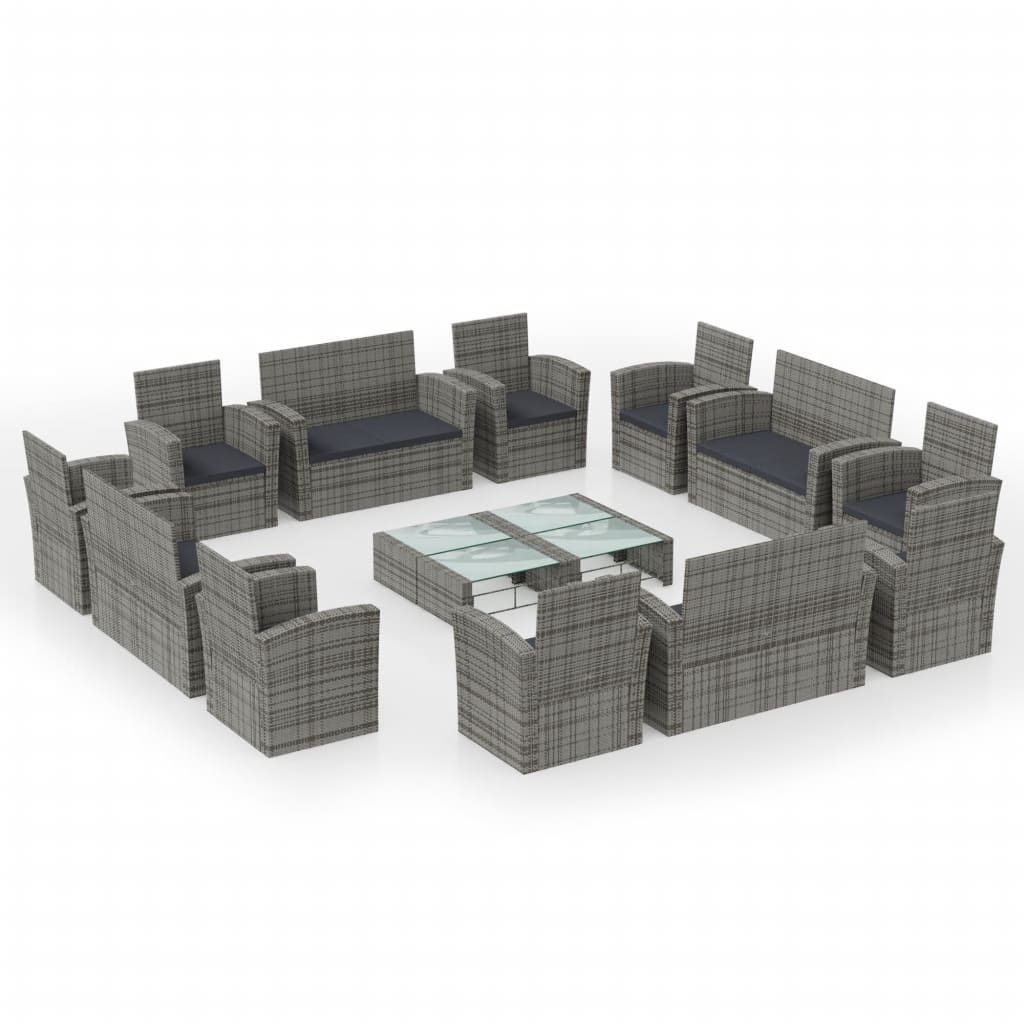 16-cz. zestaw wypoczynkowy do ogrodu, poduszki, szary rattan PE
