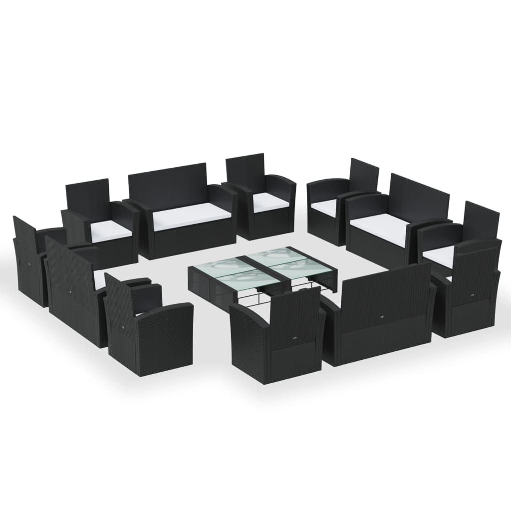 16-cz. zestaw wypoczynkowy do ogrodu, z poduszkami, czarny