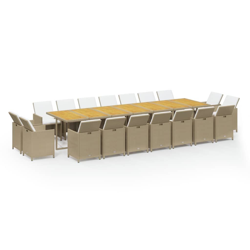 19-cz. zestaw mebli ogrodowych z poduszkami, polirattan, beżowy