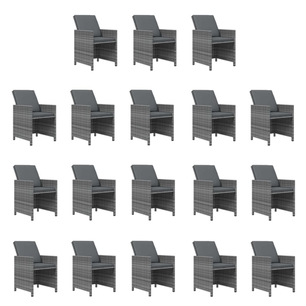 19-cz. zestaw mebli ogrodowych z poduszkami, polirattan, szary