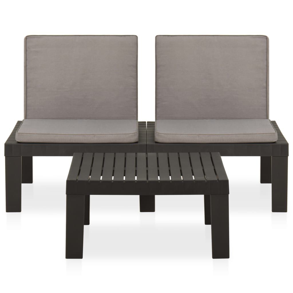 Ten ogrodowy zestaw wypoczynkowy jest znakomitym wyborem na relaks i korzystanie z pogody, a także drzemkę czy rozmowę z rodziną lub przyjaciółmi. Zestaw mebli wypoczynkowych do ogrodu wykonano z plastiku, dzięki czemu jest łatwy do czyszczenia i stabilny. Stolik z solidnym blatem idealnie sprawdzi się do postawienia przekąsek i napojów w zasięgu ręki. Oparcia i poduszki zapewniają większy komfort siedzenia na ławce.