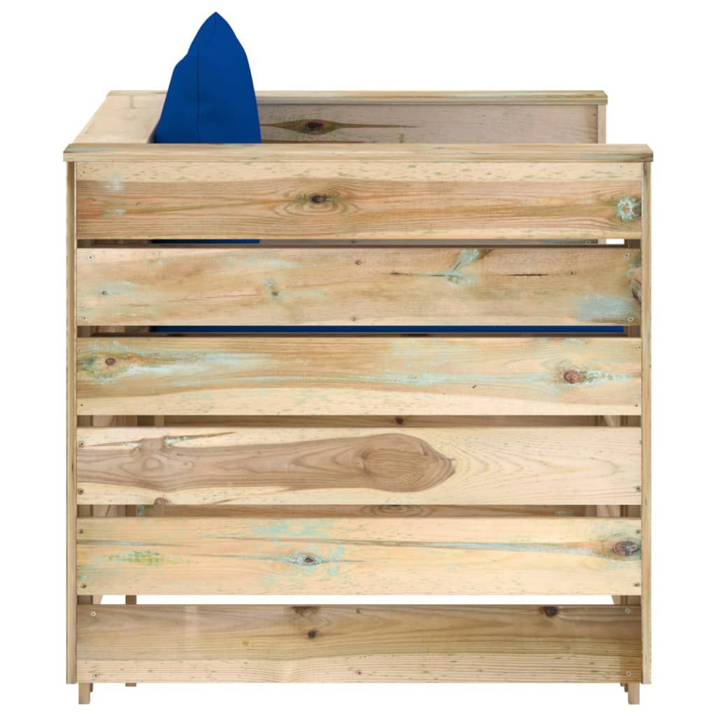 Opis produktu: Ten ogrodowy zestaw wypoczynkowy stanowi znakomity wybór, aby się zrelaksować i nacieszyć dobrą pogodą albo zdrzemnąć lub porozmawiać z rodziną i przyjaciółmi. Za sprawą ponadczasowej konstrukcji z palet wniesie on odrobinę rustykalnego uroku na Twoje patio, do ogrodu lub do salonu. Wykonany z impregnowanego drewna sosnowego zestaw wypoczynkowy z palet jest trwały, odporny na czynniki atmosferyczne i przyjazny dla środowiska. Ma on solidną konstrukcję i nie wymaga zbyt wielu czynności konserwacyjnych. W połączeniu z grubo wyściełanymi poduszkami zapewnia najwyższy komfort. Dodatkowo modułowa konstrukcja umożliwia ustawienie go w dowolnej aranżacji, zgodnie z własnym gustem. Uwaga: aby przedłużyć żywotność mebli ogrodowych, zalecamy zabezpieczenie ich wodoodpornym pokrowcem.