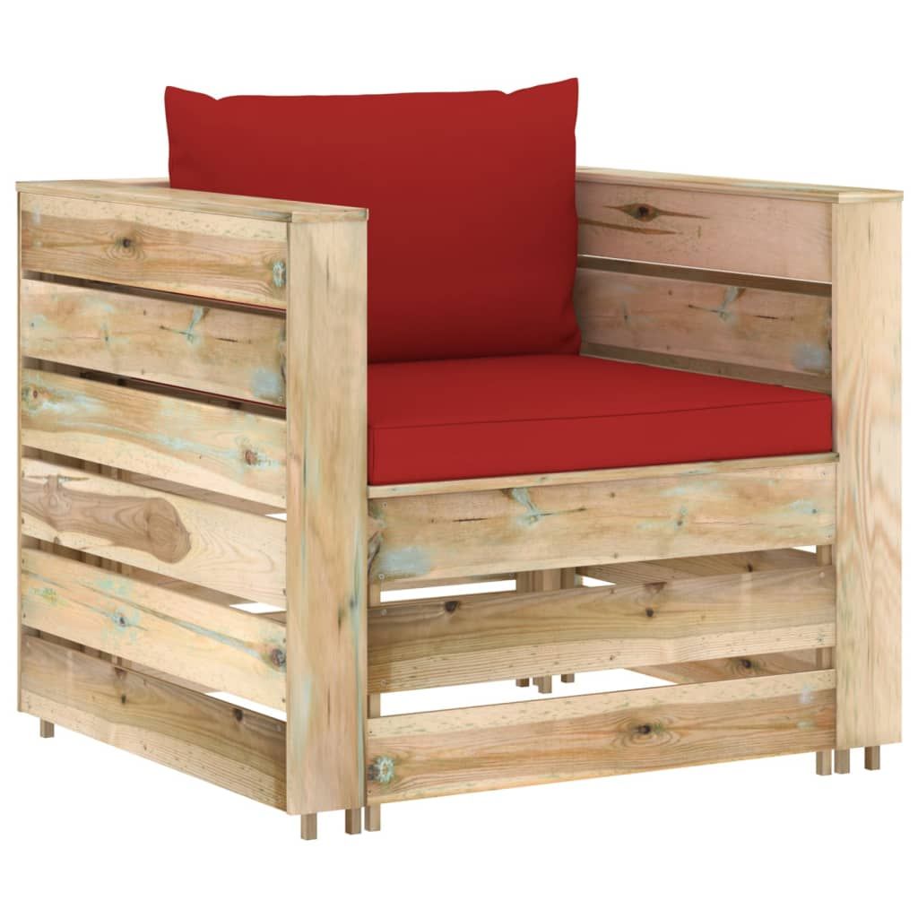 Ten ogrodowy zestaw wypoczynkowy stanowi znakomity wybór, aby się zrelaksować i nacieszyć dobrą pogodą albo zdrzemnąć lub porozmawiać z rodziną i przyjaciółmi. Za sprawą ponadczasowej konstrukcji z palet wniesie on odrobinę rustykalnego uroku na Twoje patio, do ogrodu lub do salonu. Wykonany z impregnowanego drewna sosnowego zestaw wypoczynkowy z palet jest trwały, odporny na czynniki atmosferyczne i przyjazny dla środowiska. Ma on solidną konstrukcję i nie wymaga zbyt wielu czynności konserwacyjnych. W połączeniu z grubo wyściełanymi poduszkami zapewnia najwyższy komfort. Dodatkowo modułowa konstrukcja umożliwia ustawienie go w dowolnej aranżacji, zgodnie z własnym gustem. Uwaga: aby przedłużyć żywotność mebli ogrodowych, zalecamy zabezpieczenie ich wodoodpornym pokrowcem.