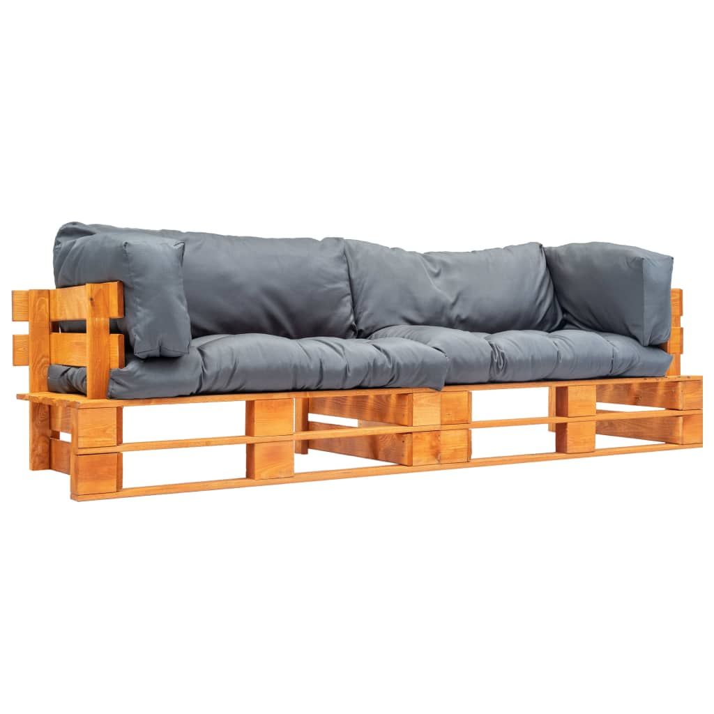 2-częściowy zestaw ogrodowy z palet, szare poduszki, sosna