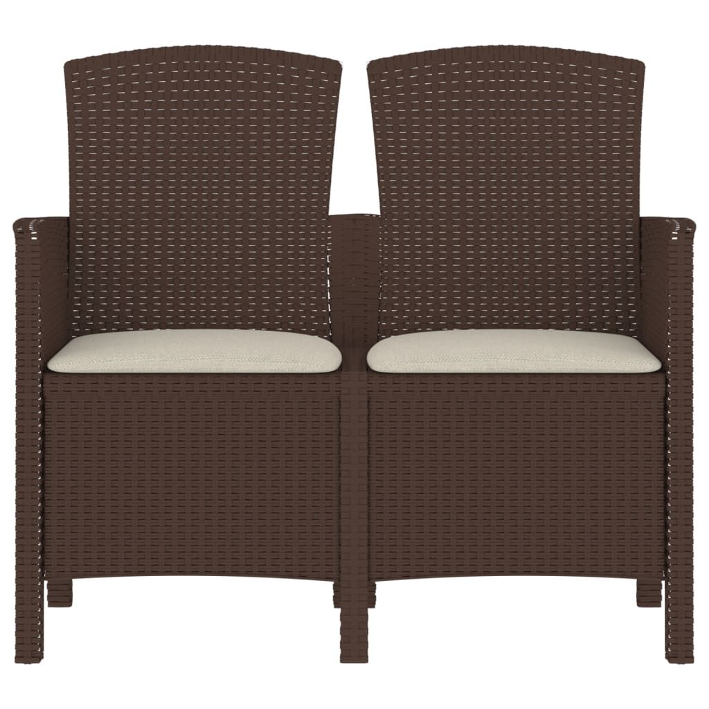 2-os. ławka ogrodowa z poduszkami, rattan PP, brązowa