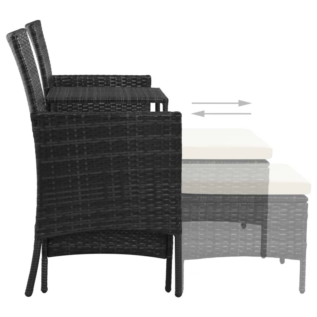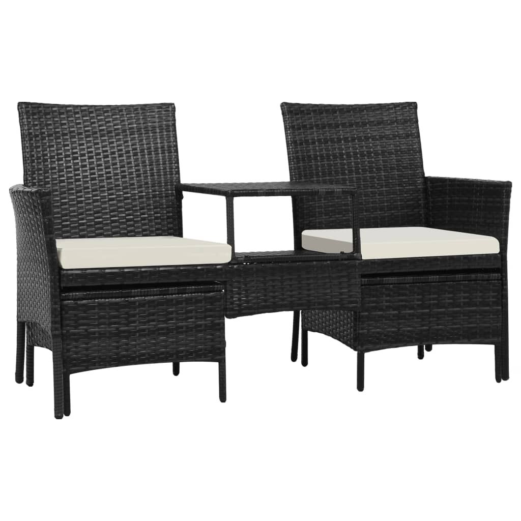 2-os. sofa ogrodowa ze stolikiem i podnóżkami, rattan PE, czerń