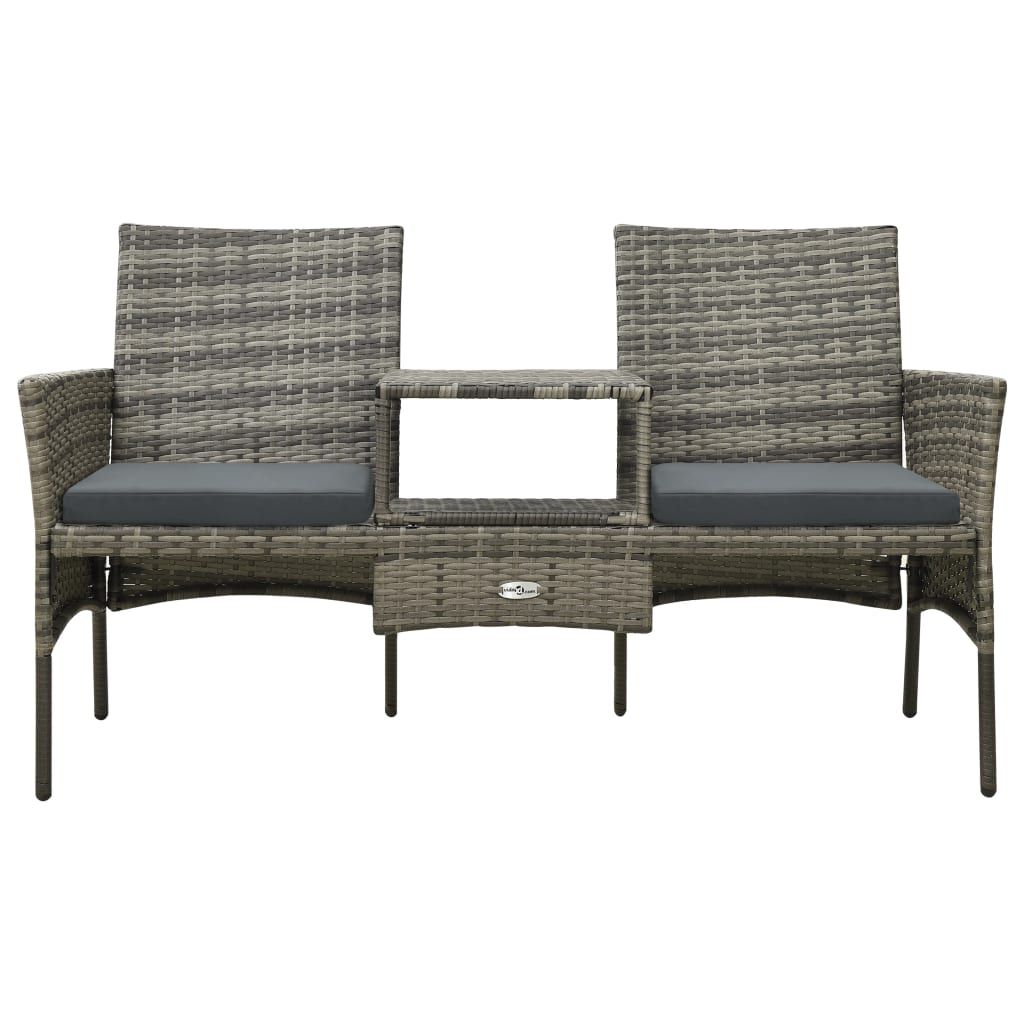 Opis produktu: Ta 2-osobowa sofa ogrodowa ze stolikiem herbacianym i stołkiem będzie przyciągać wzrok w Twoim ogrodzie, na balkonie lub patio. Komplet stanowi znakomite połączenie stylu i funkcjonalności. Dzięki wodoodpornemu rattanowi PE zestaw z ławką jest łatwy w czyszczeniu i wytrzymały. Malowane proszkowo, stalowe ramy zapewniają stabilność i trwałość. Dwa siedziska połączone są stolikiem herbacianym, na którym możesz postawić napoje, przekąski lub ulubione książki, które chcesz mieć pod ręką. Dwa podnóżki można wsunąć pod ławkę, by zaoszczędzić miejsce, gdy nie są używane. Zestaw dostarczany jest wraz z niezwykle wygodnymi, grubo wyściełanymi poduszkami zapewniającymi najwyższy komfort siedzenia. Łatwe w utrzymaniu poliestrowe powłoczki można zdjąć i wyprać. Uwaga: na czas deszczu, śniegu lub mrozu zalecamy przykryć meble, aby zapewnić ich dłuższą trwałość.