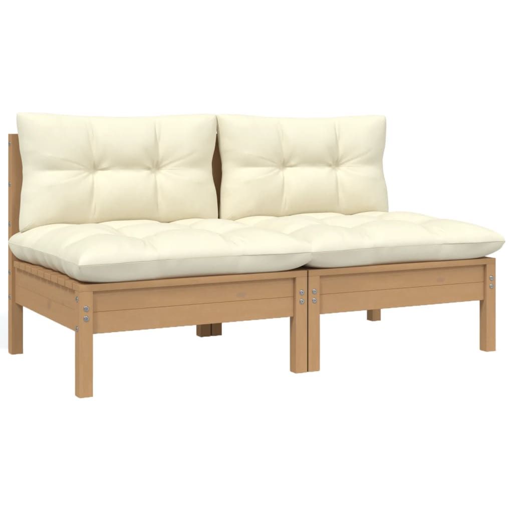 2-osobowa sofa ogrodowa z kremowymi poduszkami, drewno sosnowe