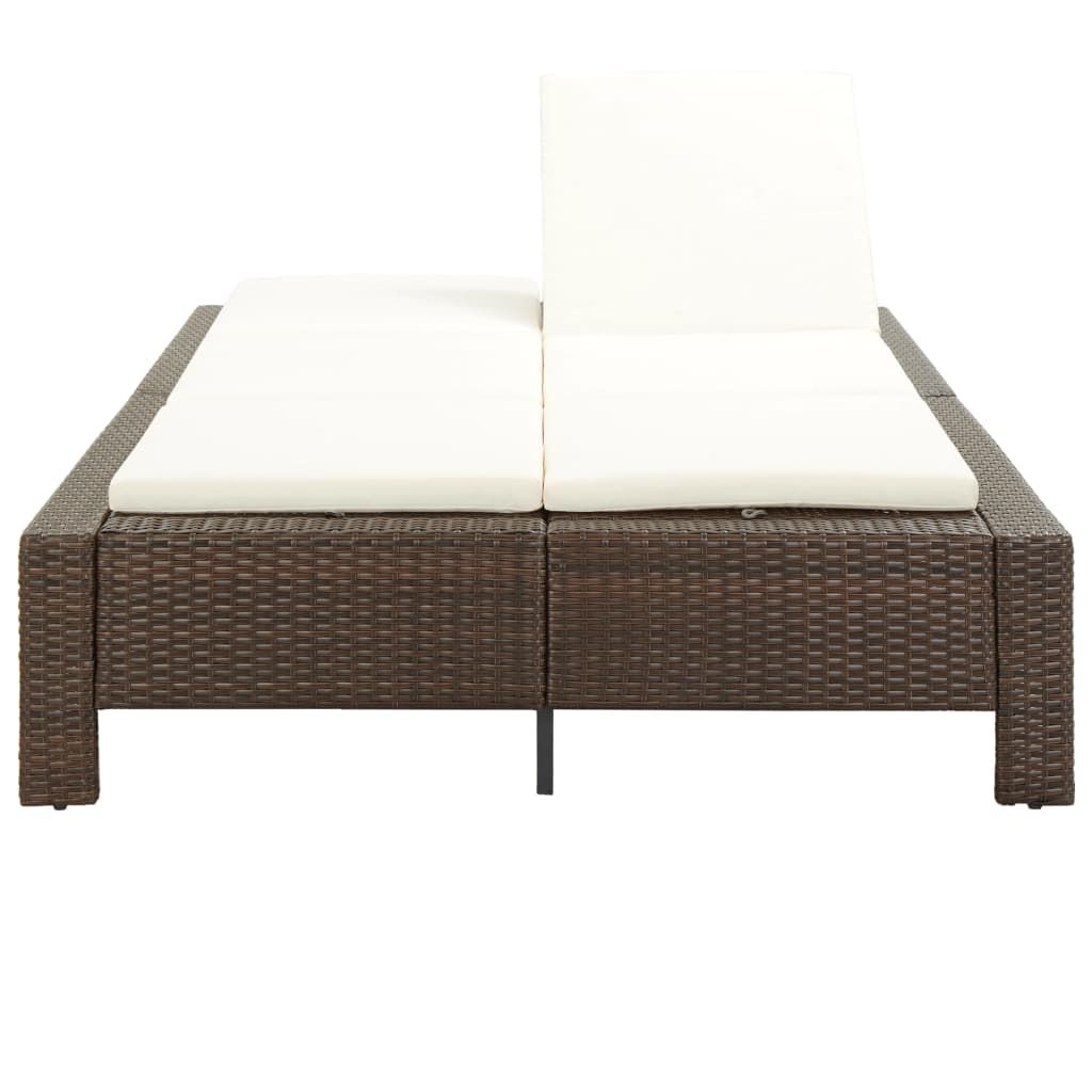 2-osobowy leżak z poduszką, brązowy, polirattanowy