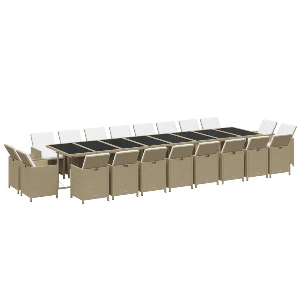 21-cz. zestaw mebli ogrodowych z poduszkami, polirattan, beżowy