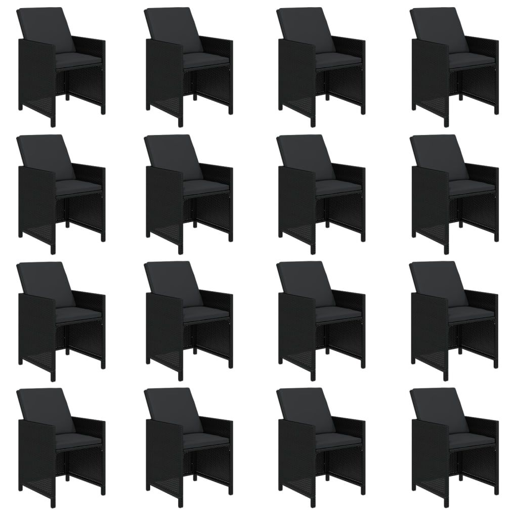 21-cz. zestaw mebli ogrodowych z poduszkami, polirattan, czarny