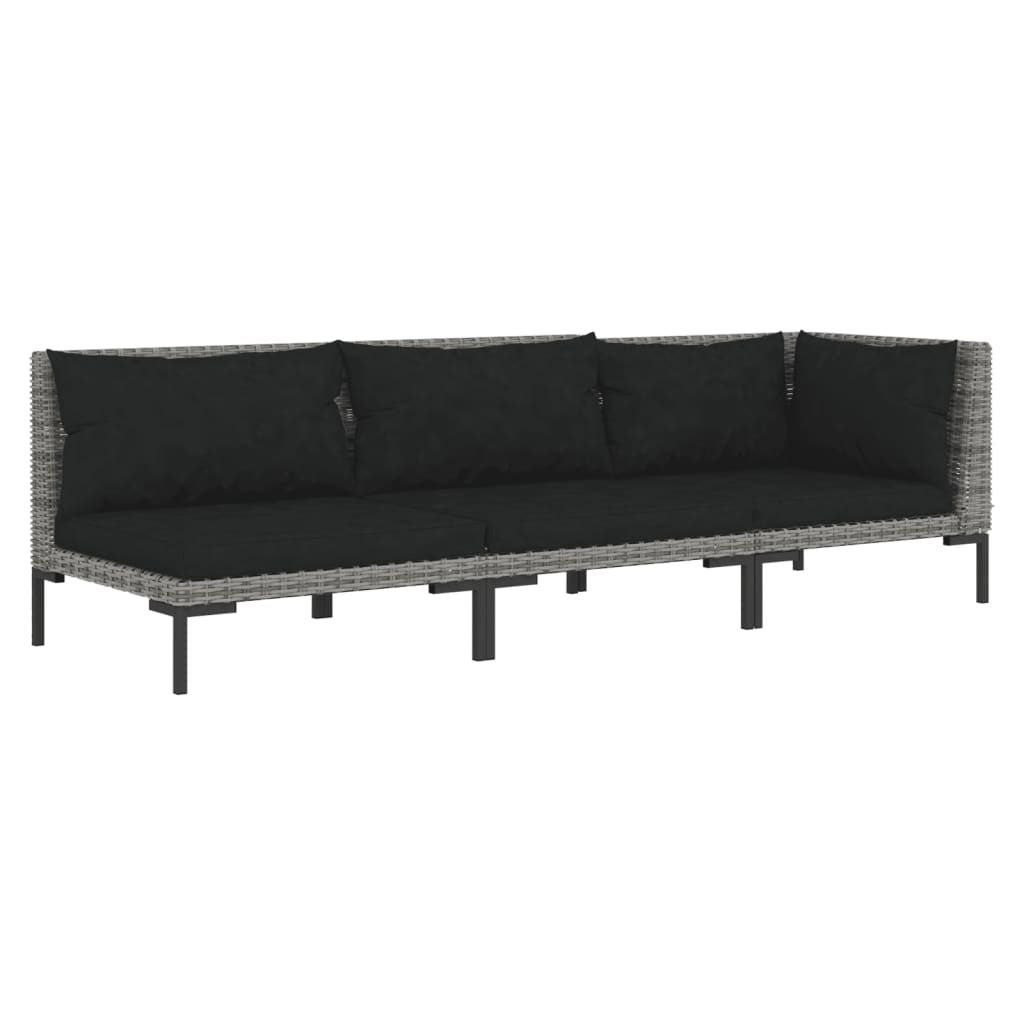 3-cz. ogrodowy zestaw wypoczynkowy, ciemnoszary rattan PE