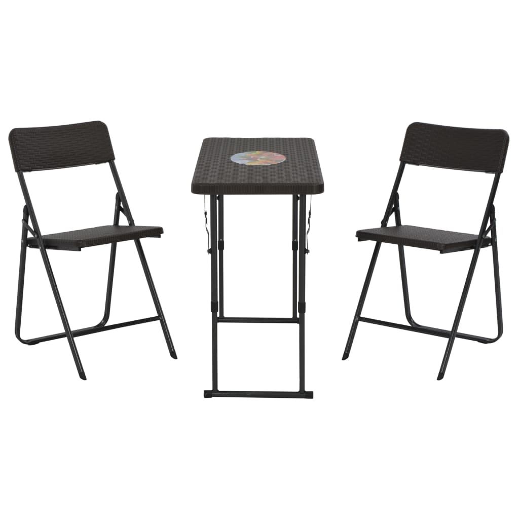 3-cz. składany zestaw bistro, HDPE, brąz, stylizowany na rattan