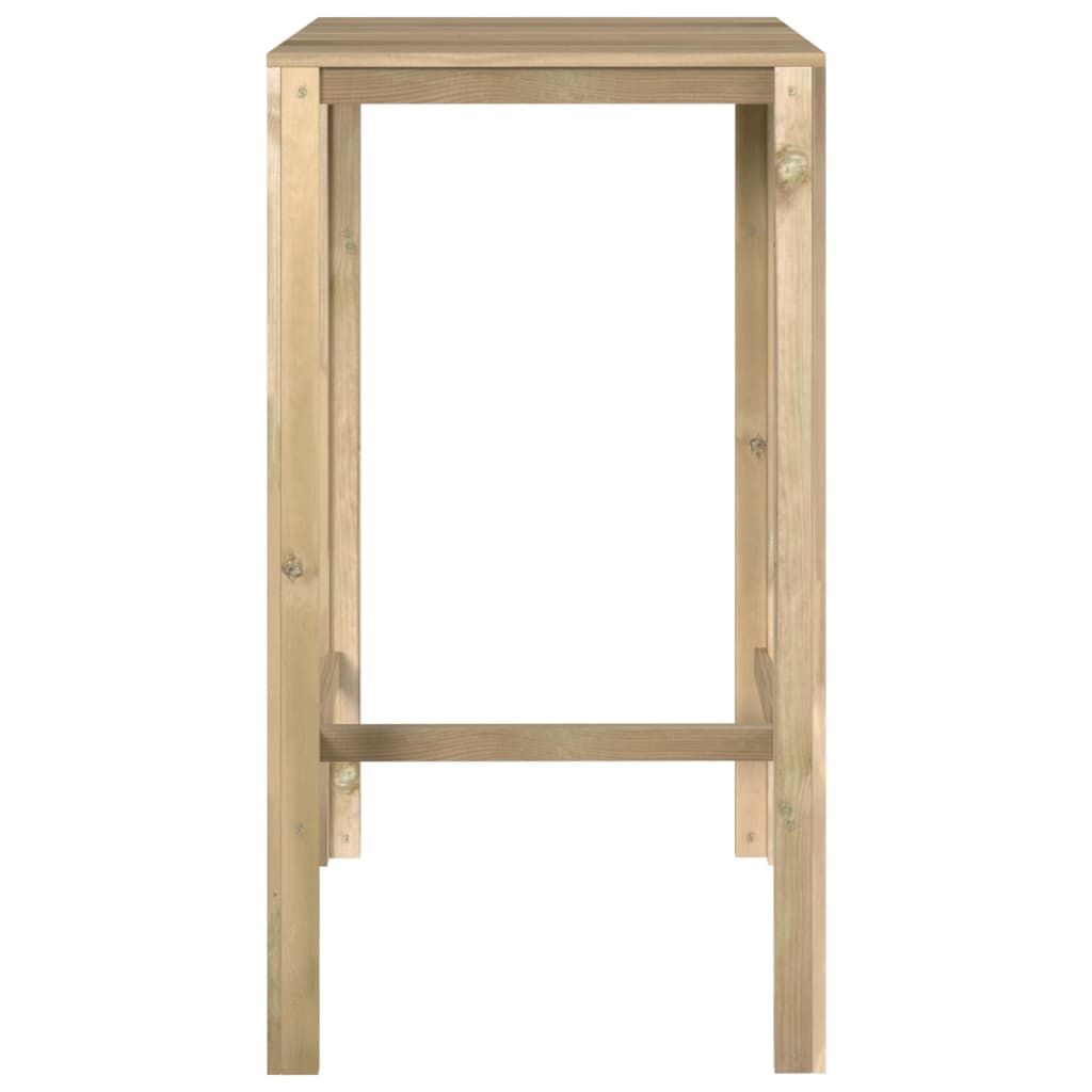 Zestaw drewnianych mebli barowych do ogrodu zapewni Ci komfort i wygodę w czasie spędzonym z rodziną i przyjaciółmi. Zestaw mebli barowych na zewnątrz wykonano z impregnowanego drewna sosnowego, dzięki czemu jest stabilny i wytrzymały. Solidny blat idealnie nadaje się do umieszczania napojów, jedzenia lub przedmiotów dekoracyjnych. Dodatkowo stołek posiada wbudowany podnóżek, co zapewnia większy komfort siedzenia. Uwaga: aby przedłużyć żywotność mebli ogrodowych, zalecamy ich regularne czyszczenie i niepozostawianie na zewnątrz bez właściwego zabezpieczenia.Czyszczenie: użyj roztworu wody z delikatnym detergentem.Przechowywanie: jeżeli to możliwe, przechowuj produkt w chłodnym i suchym miejscu, najlepiej w pomieszczeniu. Jeśli ma on być przechowywany na zewnątrz, należy go zabezpieczyć wodoszczelnym pokrowcem. Po deszczu lub śniegu usuń nadmiar wody lub śniegu z płaskich powierzchni i osusz je. Zapewnij wystarczającą cyrkulację powietrza, aby uniknąć uszkodzeń spowodowanych przez wilgoć.