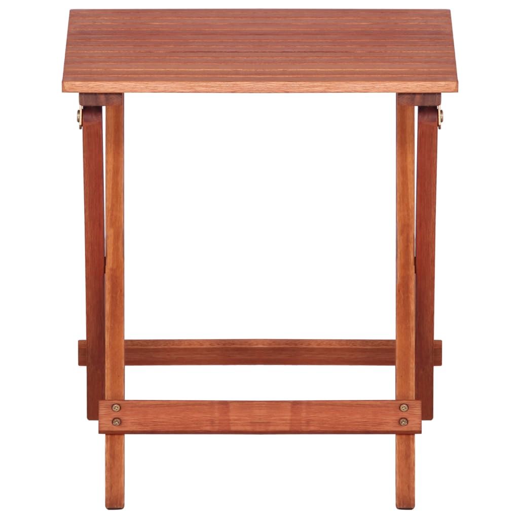 Opis produktu: Elegancki i szykowny drewniany zestaw bistro dla dzieci będzie świetnym wyborem, aby maluchy mogły zjeść posiłek na tarasie lub w ogrodzie. Składany zestaw mebli został wykonany z litego drewna eukaliptusowego, które zapewnia mu trwałość i odporność na niekorzystne warunki pogodowe. Wykończona olejem powierzchnia jest łatwa w czyszczeniu, wystarczy wilgotna ściereczka. Składana konstrukcja ułatwia przechowywanie i transport zestawu. W skład przesyłki wchodzi 1 stolik i 2 krzesła.