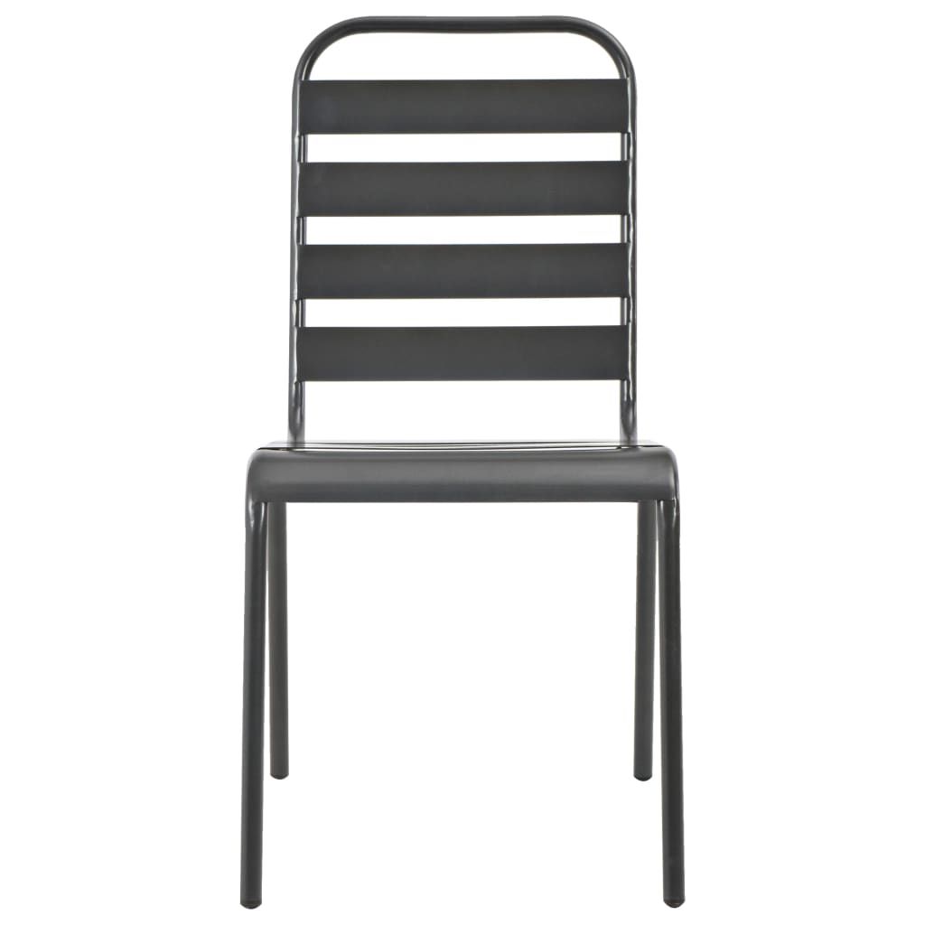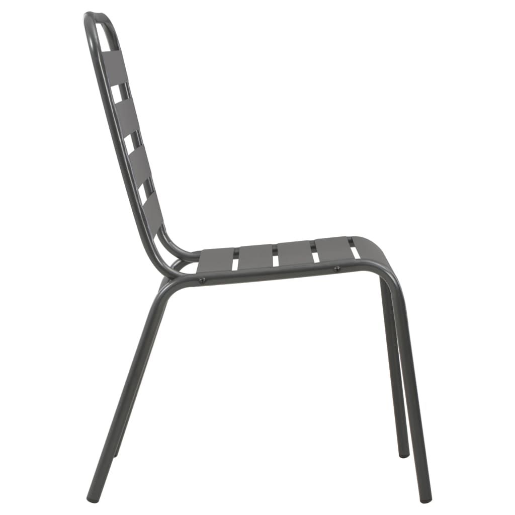 Komplet mebli bistro ma listwowy wzór, który wniesie nieco industrialnego charakteru na Twój taras, do ogrodu lub jadalni. Wysokiej jakości stół i krzesła zostały wykonane z wytrzymałej stali pokrytej powłoką elektroforetyczną i proszkową. Powłoka elektroforetyczna sprawia, że meble są odporne na rdzę, warunki atmosferyczne oraz długotrwałe użytkowanie na zewnątrz, podczas gdy powłoka proszkowa zwiększa ich trwałość. Krzesła można ustawić w stos, kiedy nie są używane, co pozwala zaoszczędzić miejsce. Meble są łatwe w czyszczeniu i konserwacji. Przesyłka zawiera 1 stół i 2 krzesła sztaplowane. Montaż zestawu bistro jest prosty.