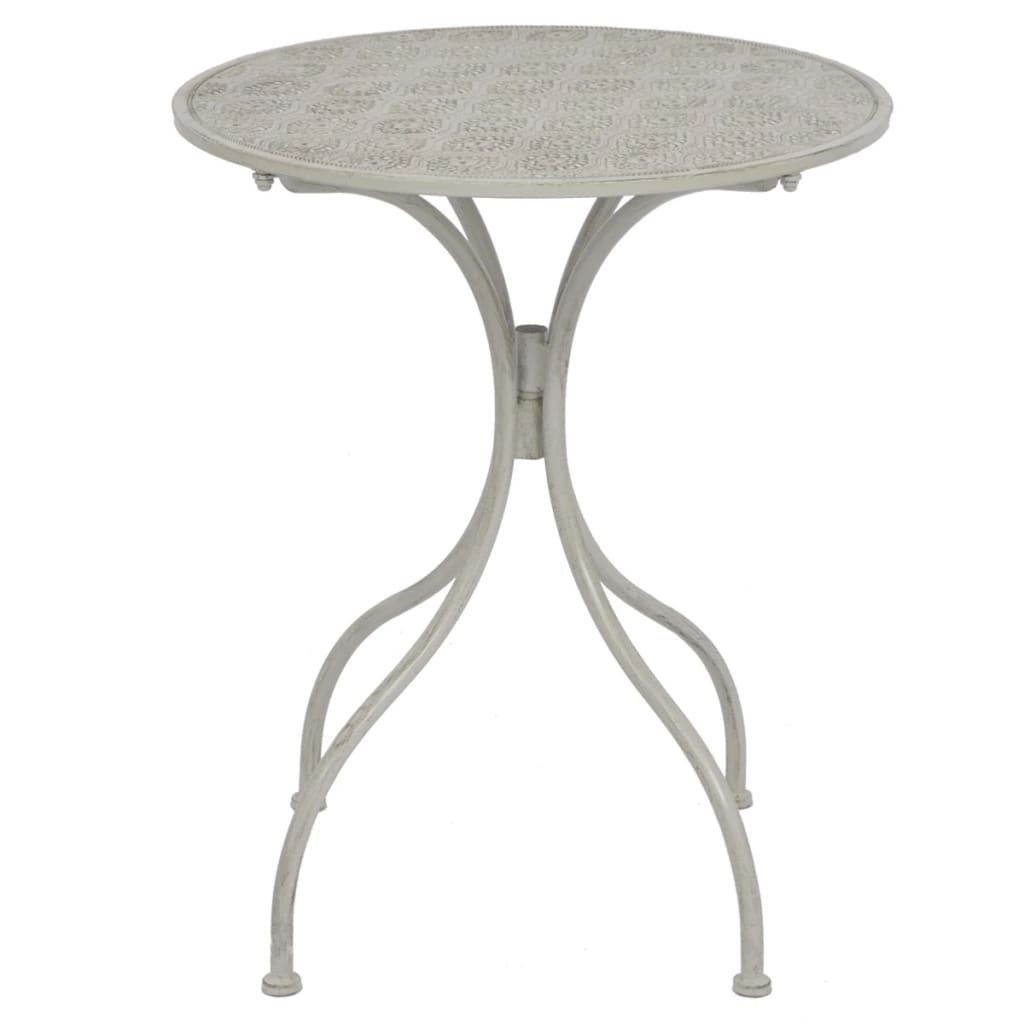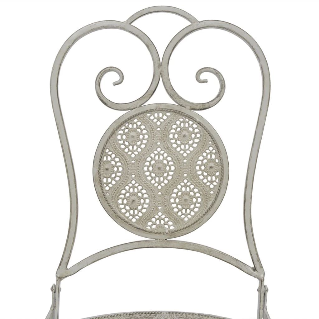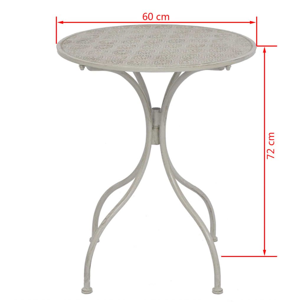 Ten zestaw mebli w stylu vintage doda klasyczny akcent podczas spożywania każdego posiłku. Stanie się on centralnym punktem Twojego ogrodu, balkonu lub tarasu. Zestaw mebli bistro wykonano z malowanej proszkowo stali, która jest odporna na warunki atmosferyczne i bardzo trwała. Fantazyjne, ręcznie malowane dekoracje i ozdobne rdzewienia sprawią, że zestaw będzie wyróżniał się w każdym ogrodzie, na tarasie lub balkonie. Klasyczny zestaw mebli ogrodowych jest bardzo łatwy do czyszczenia z użyciem wilgotnej szmatki. Krzesła można łatwo złożyć, aby zaoszczędzić miejsce, gdy nie są używane. Przesyłka zawiera 1 stolik i 2 składane krzesła.